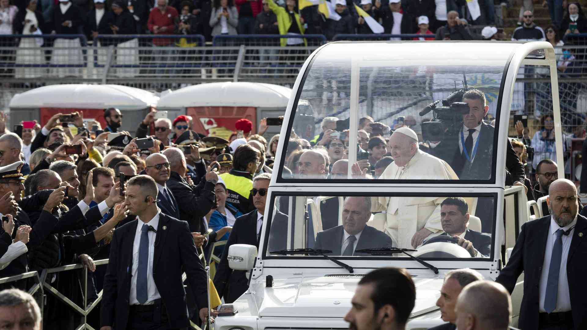 Il Papa era arrivato a Matera poco pruima delle 8. Durante il viaggio di andata c'è stata una variazione al programma: Francesco è giunto in aereo a Gioia del Colle e ha raggiunto Matera in macchina. Il maltempo infatti ha sconsigliato il trasferimento in elicottero inizialmente programmato. La messa, iniziata alle 9, è stata l’atto finale dell’evento che da giovedì a domenica ha animato chiese, strade, quartieri e ogni angolo di Matera e che in qualche modo è anche un nuovo inizio, sull’itinerario del Cammino sinodale della Chiesa italiana, di cui questo Congresso è stato una tappa fondamentale. Come è stato annunciato già la scorsa settimana, Francesco ha anticipato di un’ora l’orario della celebrazione, inizialmente previsto alle dieci, per consentire ai delegati giunti da tutta Italia di poter più comodamente tornare nelle loro sedi di residenza, data la coincidenza dell’ultima giornata del Congresso eucaristico nazionale con la giornata elettorale.