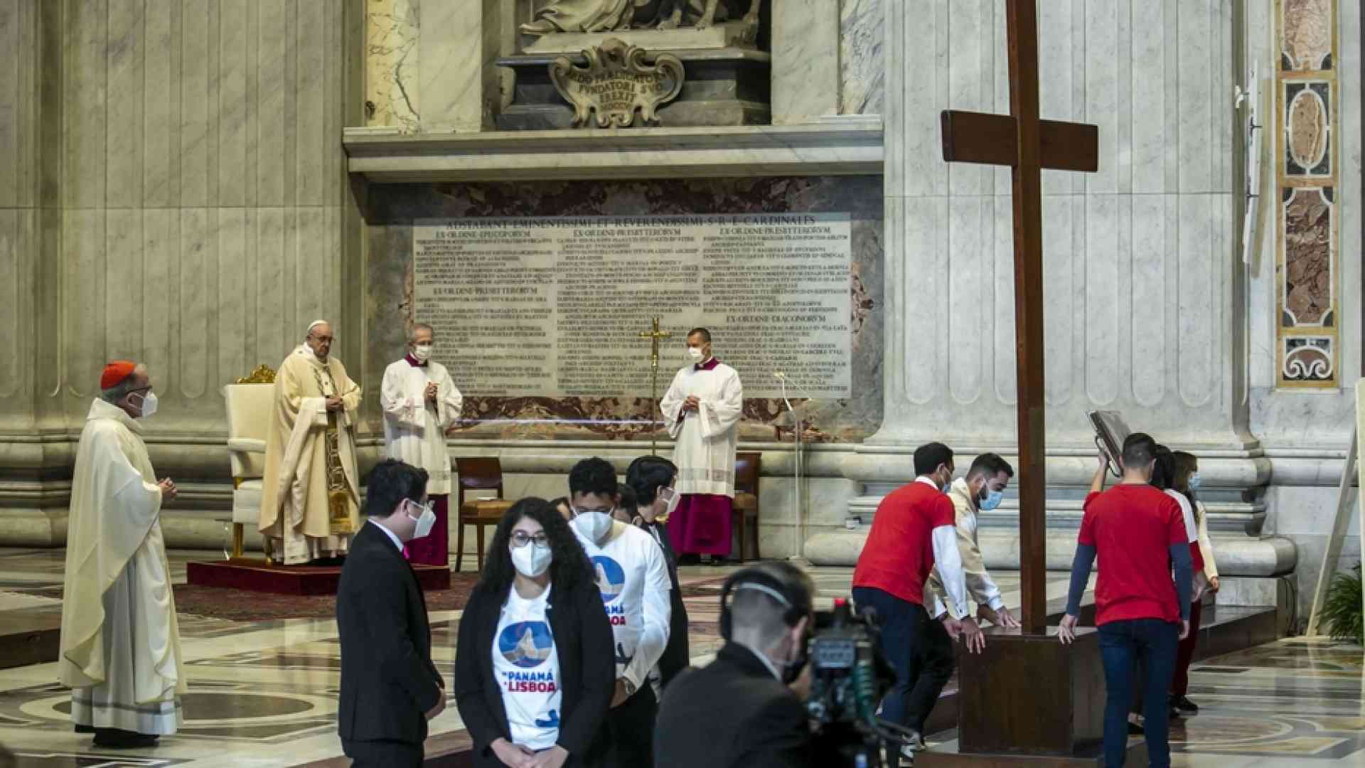 Al termine della celbrazione eucaristica, il Papa ha salutato cordialmente tutti i presenti e quanti hanno seguito attraverso i media. E ha rivolto un saluto particolare ai giovani panamensi e portoghesi, rappresentati da due delegazioni, che hanno fatto, subito dopo, il significativo gesto del passaggio della Croce e dell’icona di Maria Salus Populi Romani, simboli delle Giornate Mondiali della Gioventù. "È un passaggio importante - ha detto il Papa - nel pellegrinaggio che ci condurrà a Lisbona nel 2023.