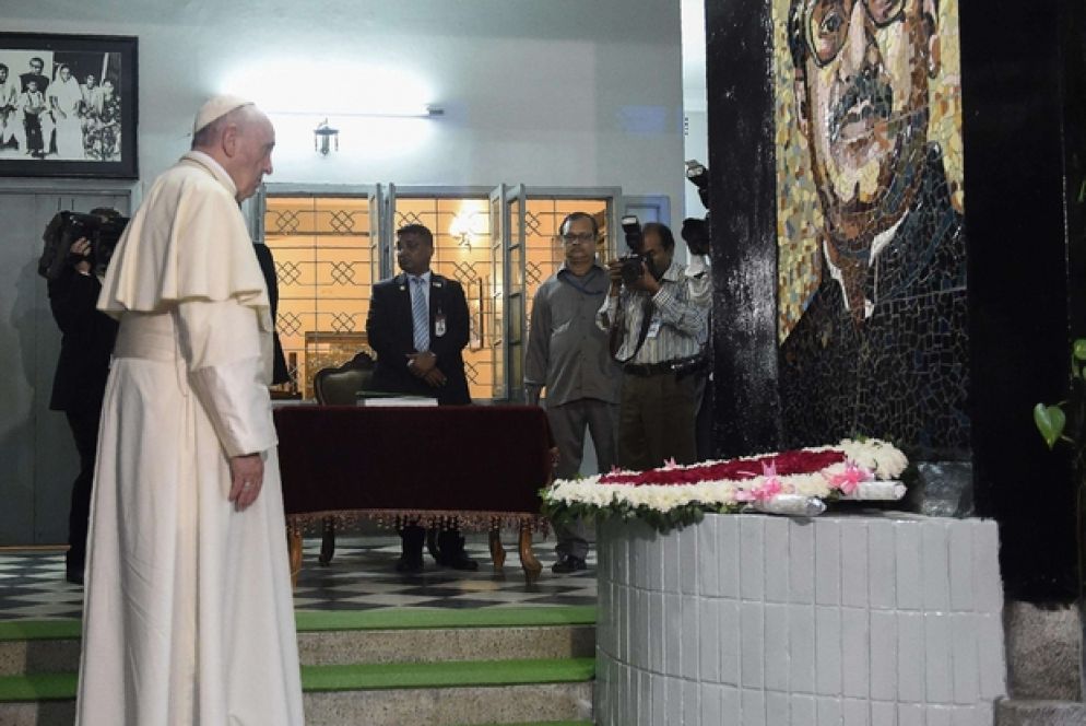 Il Papa ricorda inoltre che nessuno Stato può sopravvivere e progredire nell'isolamento. Abbiamo bisogno l'uno dell'altro, dice. E cita il primo presidente, Sheikh Mujibur Rahaman, di cui ha visitato poco prima il museo memoriale (che in pratica era la sua casa) e il suo disegno di “una società moderna, pluralistica, e inclusiva, in cui ogni persona e ogni comunità potesse vivere in libertà, pace e sicurezza, nel rispetto dell'innata dignità e uguaglianza di diritti di tutti”.