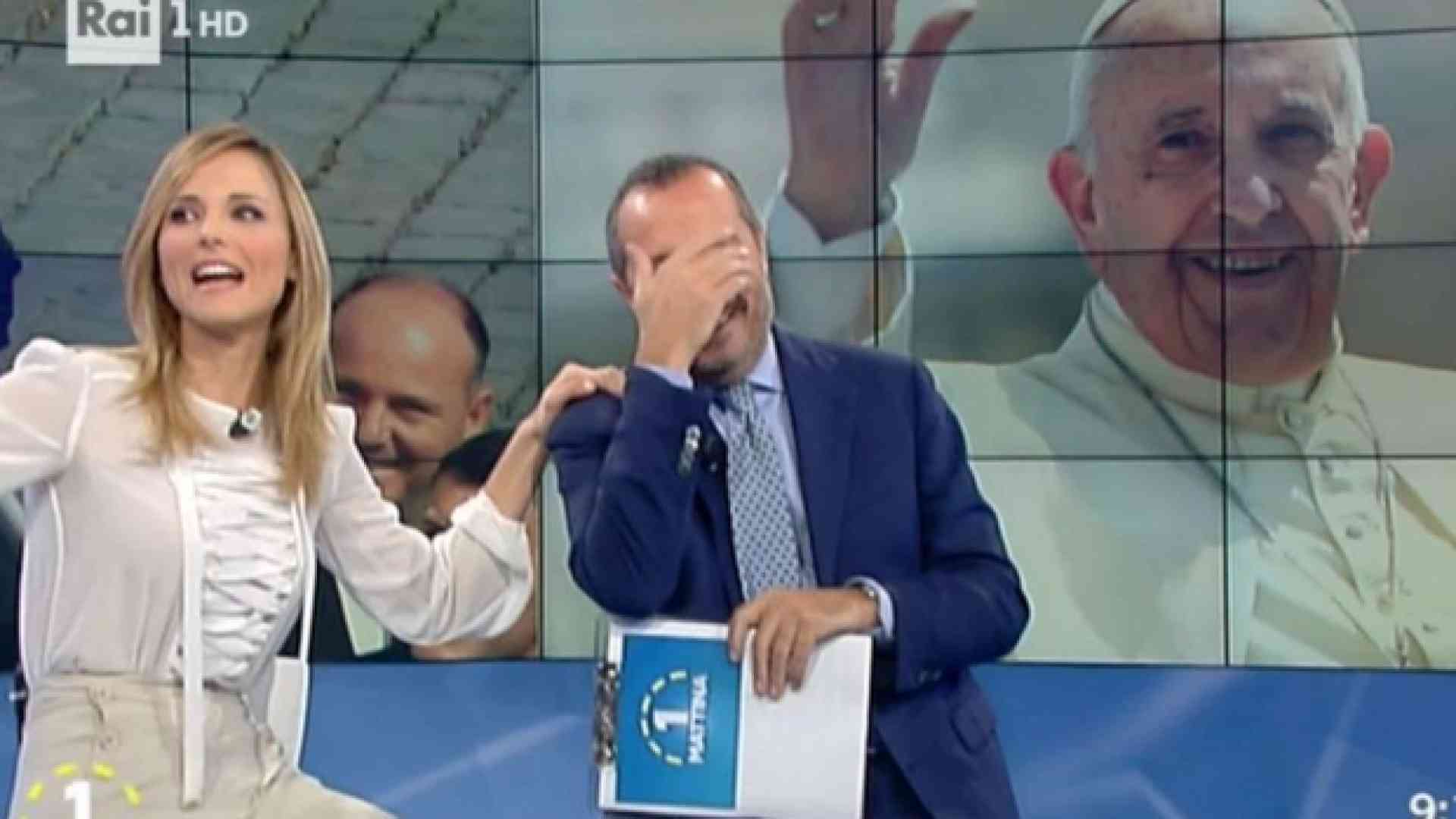 Visibilmente emozionati i due conduttori, Francesca Fialdini e Franco di Mare. Prima di loro, è toccato solo a Bruno Vespa l'onore di una telefonata in diretta. Era il 13 ottobre 1998 e Papa Giovanni Paolo II alzò il telefono e chiamò Bruno Vespa per ringraziarlo della puntata che Porta a Porta stava dedicando al ventesimo anniversario del suo Pontificato. Ecco il video