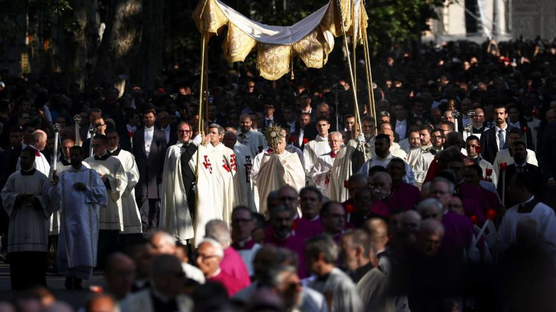 Leone XIV guarda ai poveri nella grande festa del Corpo e Sangue di Cristo: indigenti in ogni angolo del pianeta, ma soprattutto affamati nella «relazione con Dio», dice. Festa che, come da tradizione, porta il Papa all’aperto: davanti alla Basilica di San Giovanni in Laterano, la Cattedrale della sua diocesi, dove presiede sul sagrato la Messa questo pomeriggio che vede anche la presenza di legislatori e sindaci di 68 nazioni arrivati per il Giubileo dei governanti; lungo le strade della Capitale in cui porta a piedi il Santissimo Sacramento; all’ingresso della Basilica di Santa Maria Maggiore dove termina la processione e impartisce la benedizione eucaristica. Processione con sorpresa: perché Leone XIV non sale su alcun mezzo per muoversi accanto all’Ostia consacrata, ma sceglie di camminare in prima persona fra le vie della città. Passo sostenuto per un Papa di 69 anni. E sportivo: che ha continuato a giocare a tennis e a frequentare la palestra anche negli ultimi due anni, quando era tornato a Roma come prefetto del Dicastero per i vescovi. Trentacinque minuti di cammino, lungo via Merulana, un chilometro e mezzo. È una scena suggestiva che incanta Roma: il Papa che tiene alto l’ostensorio in mano e che lo avvolge con il velo omerale, sotto il baldacchino, in mezzo alla folla che lo accompagna e idealmente lo scorta; e un popolo di ventimila fedeli, secondo la Sala Stampa vaticana, che lo segue con le candele. Ad aprire il lungo corteo, rappresentanze delle confraternite, diaconi, sacerdoti, religiosi e religiose, vescovi e cardinali. Addobbate a festa diverse finestre e facciate dei palazzi.