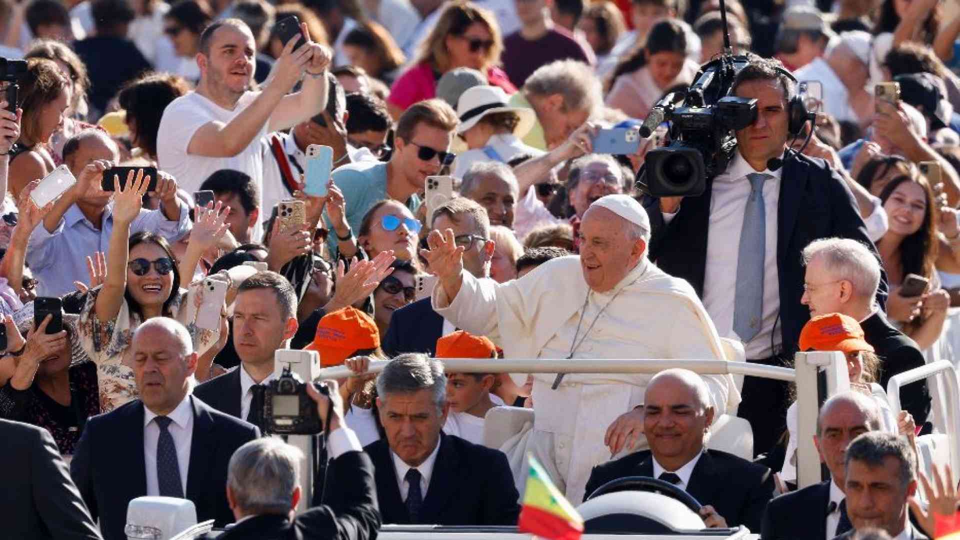 “Per favore, allargate i confini!”, l’appello finale a braccio: “Guardare largo e non cadere prigionieri delle piccolezze: allargare i confini del nostro sguardo, perché veda il bene che c’è negli altri e sia capace di dilatare i propri orizzonti. E anche dilatare il proprio cuore: dilatare il cuore per capire, per essere vicino a ogni persona e a ogni civiltà”.