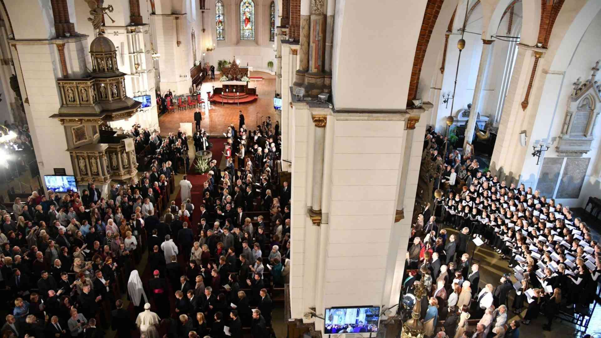 Il momento di preghiera nel Riga Doms è nobilitato dall’imponente organo del 1883. C’è il coro femminile che testimonia la grande tradizione luterana nei canti liturgici. Una Schola cantorum locale intona anche il gregoriano “Fundata est Domus”. Oltre al Papa e all’arcivescovo luterano Janis Vanags e a quello cattolico Zbignevs Stankevics intervengono anche il metropolita ortodosso e un pastore battista. Vanags ricorda che nel Doms è sepolto San Meinardo che Clemente III 830 anni fa nominò primo vescovo nei Paesi Baltici. "Da allora – sottolinea – il cristianesimo ha reso questa terra appartenente allo spazio europeo e alla civiltà cristiana”.