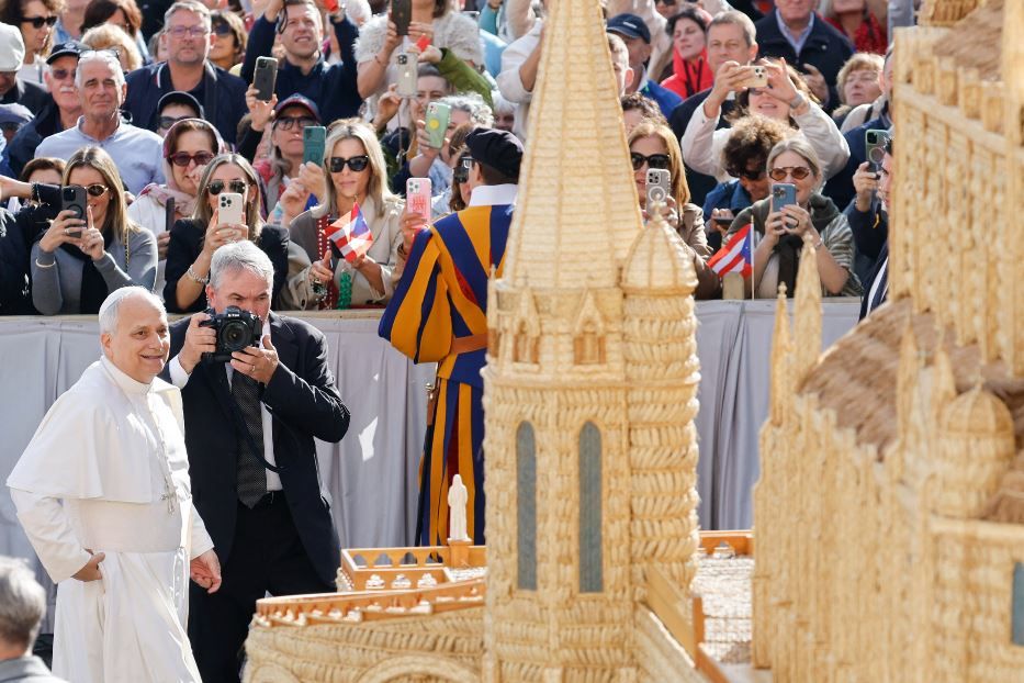 Inizio insolito per l’udienza generale. Leone XIV, giunto come di consueto un quarto d’ora prima in piazza San Pietro per il saluto alla folla di fedeli, scende subito dalla papamobile per rendere omaggio a una riproduzione del Santuario mariano di Lourdes, realizzata con le spighe di grano. Accanto a lui, l’arcivescovo di Ancona-Osimo, Angelo Spina. È nella diocesi marchigiana che ogni anno si celebra la festa del Covo di Campocavallo di Osimo: una festa di ringraziamento dedicata alla prodigiosa immagine della Madonna Addolorata che si venera nel Santuario di Campocavallo. A lei ogni prima domenica di agosto viene offerto in festante processione il Covo, un “monumento al grano” realizzato con 2-3 milioni di spighe sapientemente intrecciate a formare vere e proprie opere d’arte rurale. Ogni anno il Covo rappresenta un tema diverso, dai simboli della cristianità alle riproduzioni di Santuari e Cattedrali di tutto il mondo. Al termine dell’udienza, rivolgendosi ai pellegrini in lingua italiana, Leone XIV saluta in particolare le parrocchie di Maglie, Capodrise, Melito di Napoli e quella di Campocavallo di Osimo con l’arcivescovo Spina. E poi l’associazione nazionale Polizia di Stato di Enna, l’associazione Aiccos e gli alunni e insegnanti della scuola Maestre Pie Filippini di L’Aquila. L’ultimo pensiero per la memoria liturgica di Teresa di Gesù Bambino, dottore della Chiesa e patrona delle missioni.