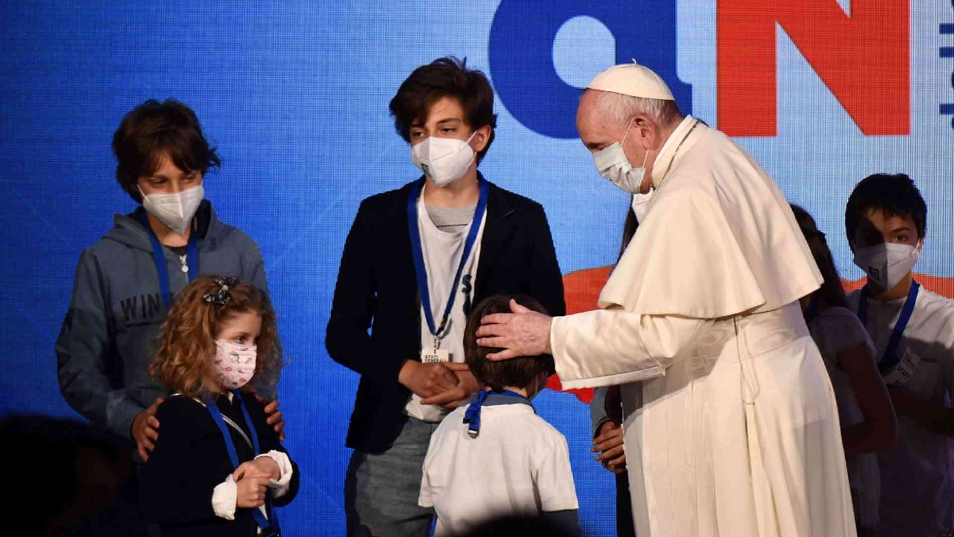 Il Pontefice è arrivato puntuale alle 9 nel foyer della grande struttura non lontana da piazza San Pietro, seguito dal presidente del Consiglio Mario Draghi. Sul palco otto bambini lo hanno affiancano durante tutto l’incontro. Ad ascoltarlo ci sono in prima fila il premier con i ministri Patrizio Bianchi dell’Istruzione ed Elena Bonetti della Famiglia, la sindaca di Roma Virginia Raggi con il presidente della Regione Lazio Nicola Zingaretti.
