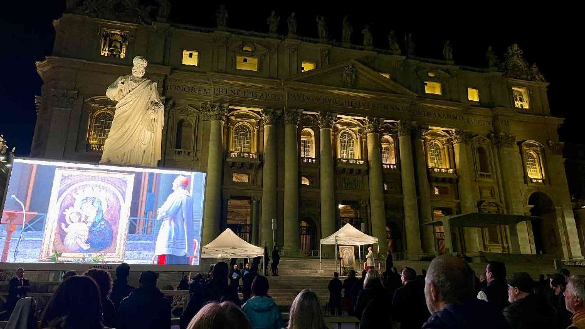 A guidare la preghiera mariana ieri sera, 23 marzo, il cardinale Mauro Gambetti, arciprete della basilica di San Pietro. «È una grande gioia – esordisce il porporato -. Il Papa è tornato a casa. Vogliamo ringraziare Dio, insieme a Maria. Il suo ritorno a casa sia segno di speranza per tutti coloro che in questo momento affrontano con coraggio e fiducia l’ora della sofferenza. La nostra preghiera – conclude -, che lo ha accompagnato in questo mese di trepidazione, continua e si fa implorazione al Signore perché lo benedica con una rapida e completa convalescenza, ridonandogli la forza e la salute per continuare a guidare il popolo di Dio con amore, saggezza, e vigore».
