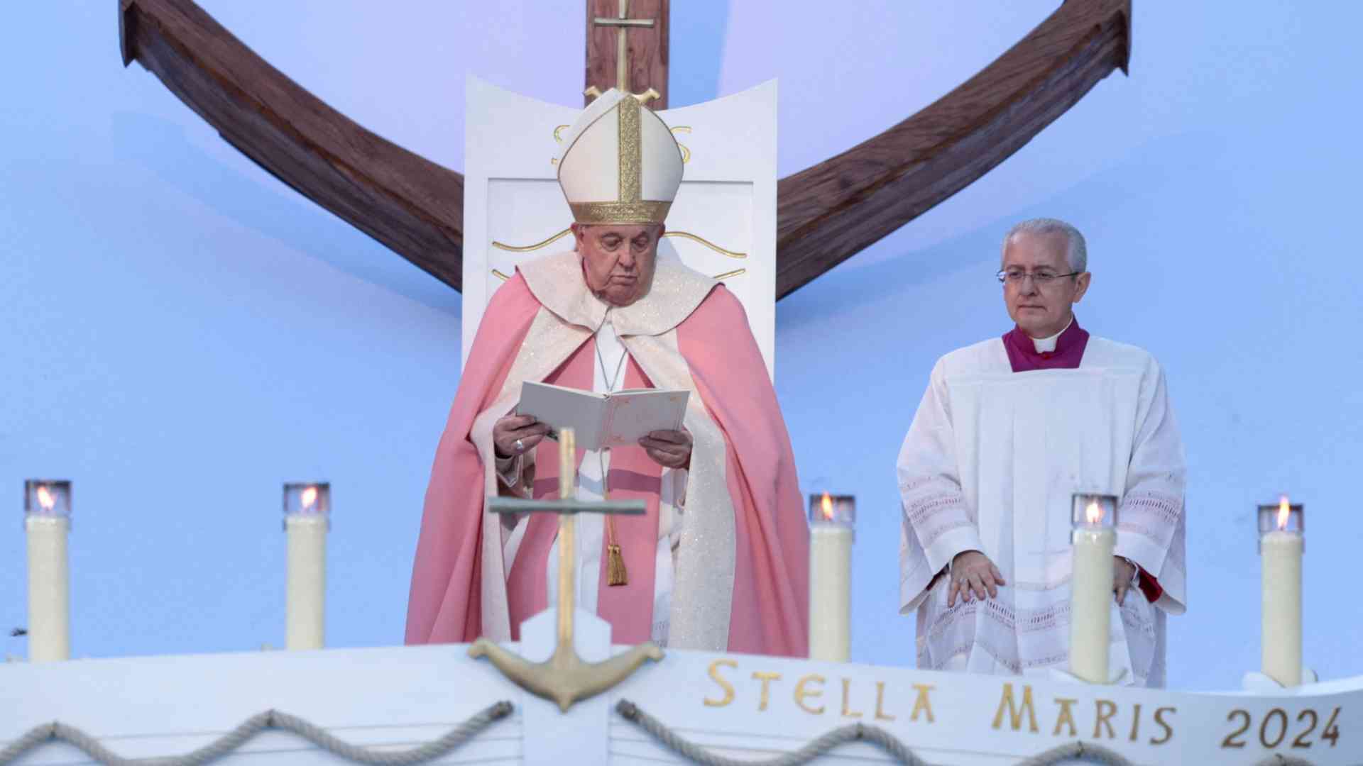 Pace e sana laicità sono le due stelle polari della giornata del Pontefice in Corsica, 47° viaggio internazionale, prima volta di un pontefice nell'isola. Della prima, esprimendosi sempre in italiano, parla all’Angelus, recitato nella cattedrale con i vescovi, i sacerdoti i religiosi e le religiose. Della sana laicità invece tratta nel discorso al Congresso "La religiosità popolare nel Mediterraneo", tappa iniziale della visita odierna. Infine durante la messa di fronte a quindicimila fedeli quasi la si può toccare con mano questa pietà popolare. Specie quando, poco prima dell'inizio, la statua della Vergine solca la folla, portata a spalle dai membri delle confraternite e tutto il popolo intona un bel canto mariano. Mentre il Papa celebra su un altare a forma di prua di barca e le ombre della sera a poco a poco avvolgono l'assemblea che continua a cantare fino alla fine. Anche in mezzo alle devastazioni delle guerre, la speranza del Signore che viene non delude mai, è il messaggio del Vescovo di Roma in questo terzo momento del viaggio.