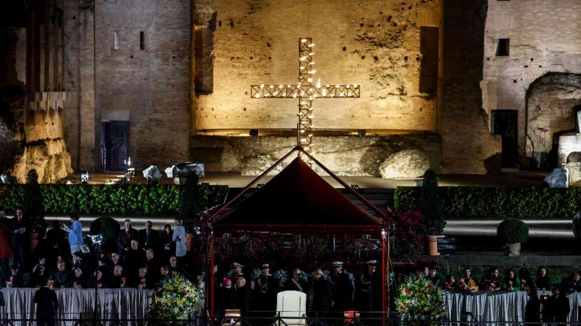 Francesco non partecipa per motivi precauzionali. Nei testi chiede a Gesù di saperlo riconoscere nel volto di chi soffre: donne bambini, non nati, vittime della guerra