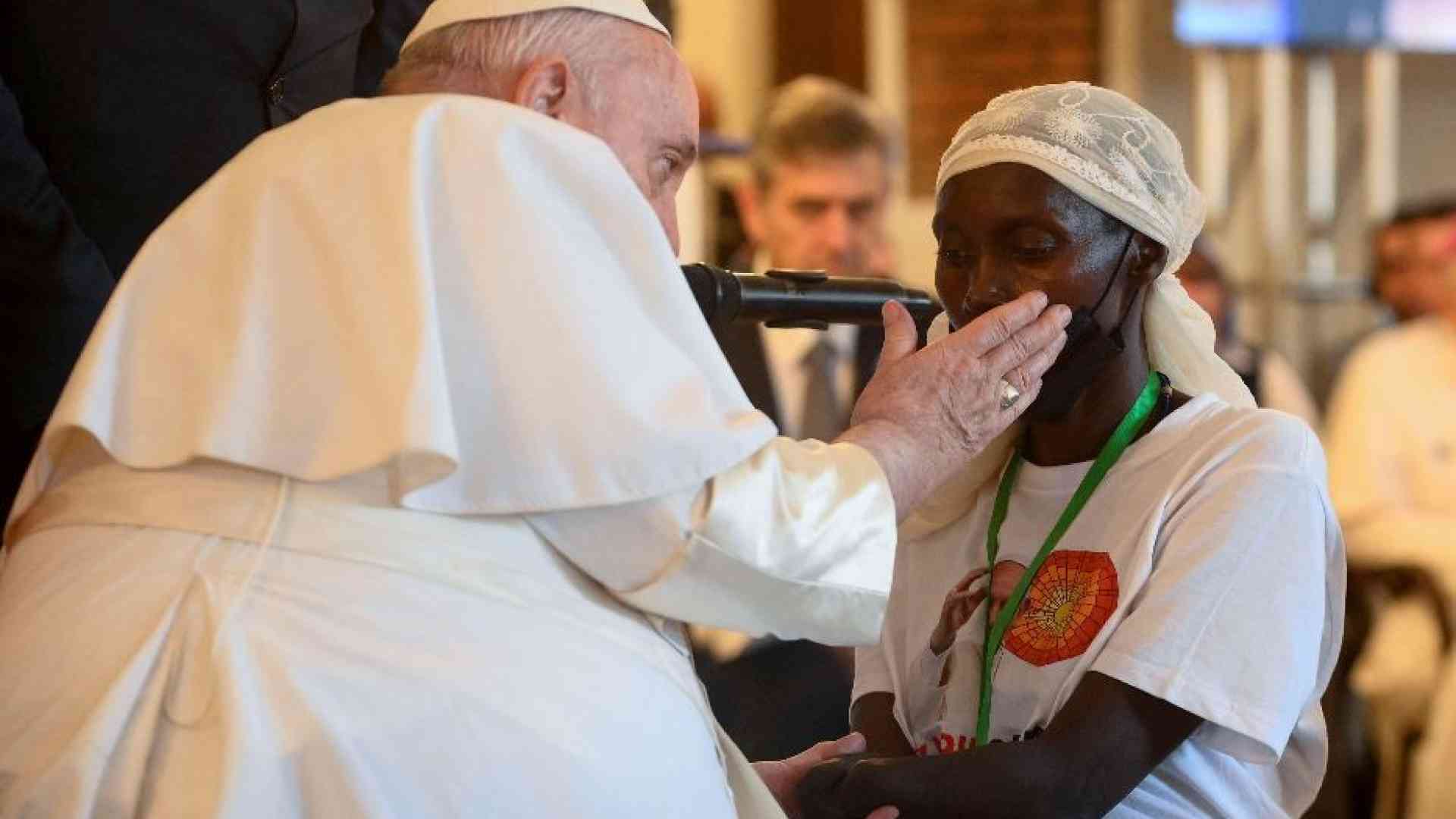 Francesco ha ascoltato in silenzio. Poi ha parlato: «Davanti alla violenza disumana che avete visto con i vostri occhi e provato sulla vostra pelle si resta scioccati. Non ci sono parole; c’è solo da piangere». E in nome di Dio con forza ha condanno le violenze armate, i massacri, gli stupri, la distruzione e l’occupazione di villaggi e i saccheggi che continuano a essere perpetrati nella Repubblica Democratica del Congo e «il sanguinoso, illegale sfruttamento della ricchezza di questo Paese – ha affermato – così come i tentativi di frammentarlo per poterlo gestire».