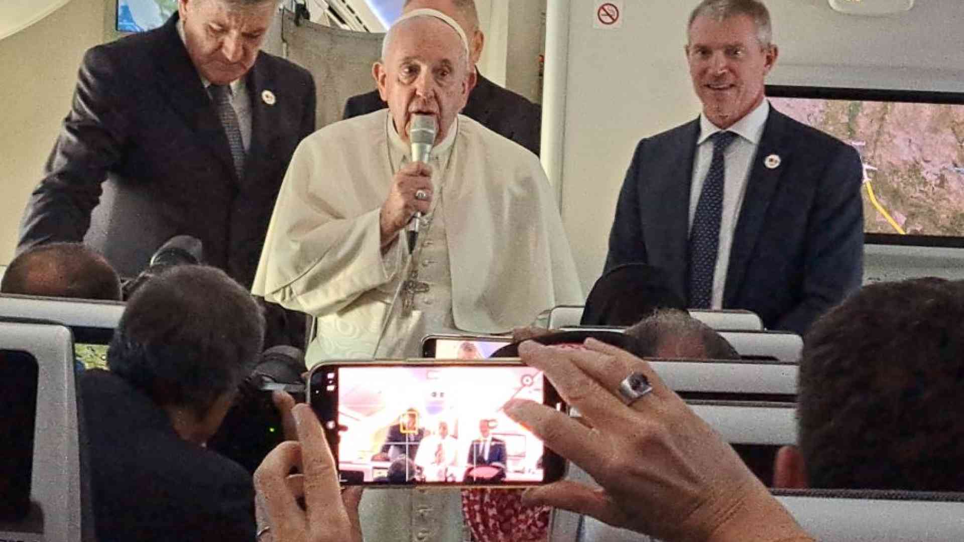 Il Papa di ritorno dal Bahrein risponde alle domande dei giornalisti. "Spero il governo Meloni faccia bene". Denuncia gli imperialismi e il commercio delle armi. "Voi giornalisti siate