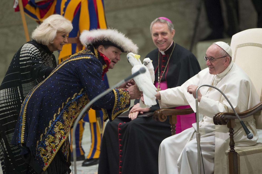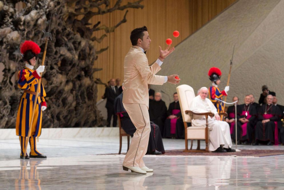 Giocolieri, acrobati, un illusionista, un addestratore di pappagalli hanno fatto sorridere ammirati il Pontefice e tutti i presenti.