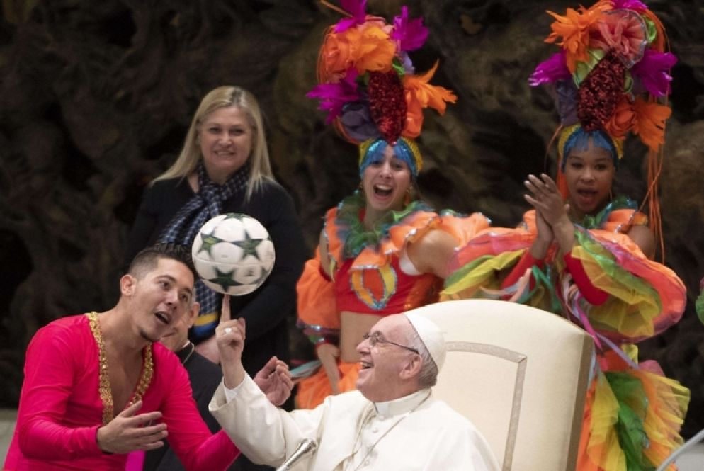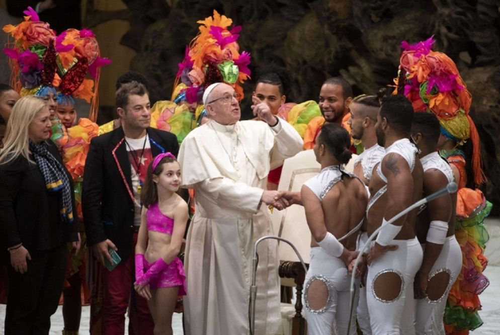 Dopo i saluti ai pellegrini polacchi, una ventata di musica e colore in aula Paolo VI: si sono esibiti, infatti, davanti a un divertito papa Francesco, artisti del circo di Cuba, con danze ed esercizi acrobatici. "Con il loro spettacolo portano bellezza, una bellezza che ci vuole tanto sforzo, allenamento per farlo. La bellezza sempre eleva il cuore, ci fa più buoni a tutti, ci porta alla bontà, ci porta a Dio. Grazie tante" così li ha salutati il Pontefice.