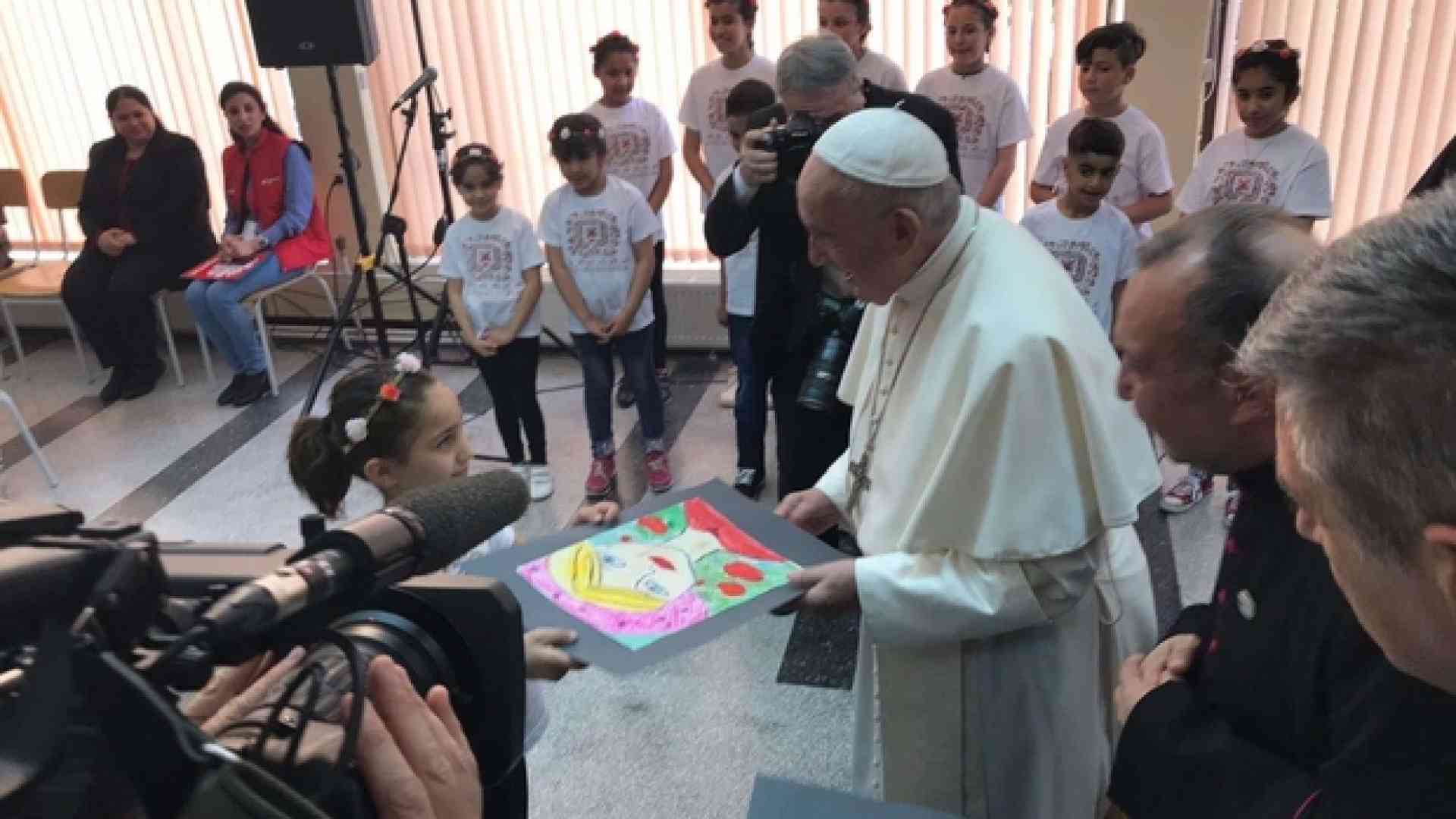 Dopo il breve saluto di una volontaria, il canto eseguito dai bambini e il dono dei disegni dei piccoli al Papa, il Pontefice ha salutato le famiglie accolte nel Centro e rivolto loro alcune parole: "Oggi il mondo dei migranti e dei rifugiati è un po' una croce, una croce dell'umanità, e la croce è tanta gente che soffre". (IL TESTO)