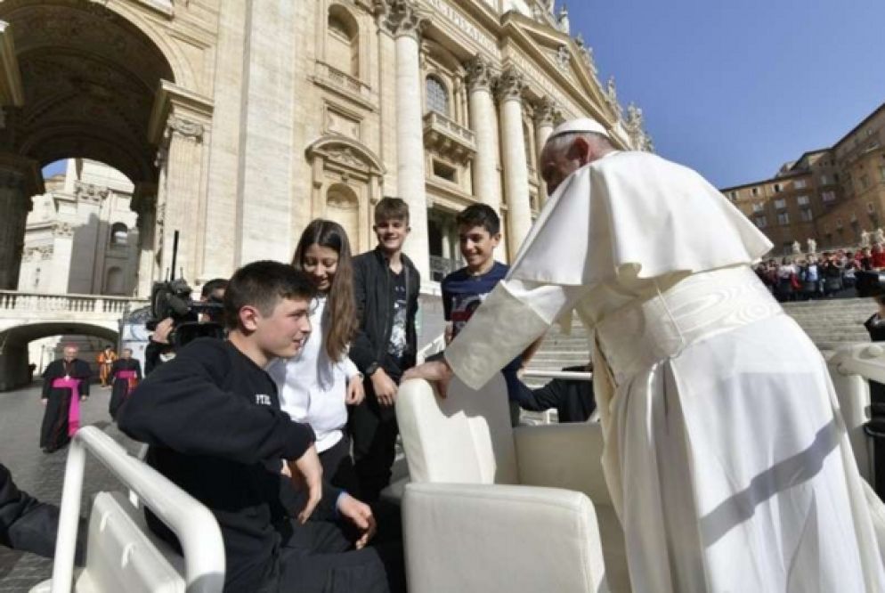 Prima di iniziare il giro tra i settori delimitati dal colonnato del Bernini, Francesco ha fatto salire a bordo quattro ragazzi che hanno avuto il privilegio di godersi insieme al Papa il percorso tra la folla.