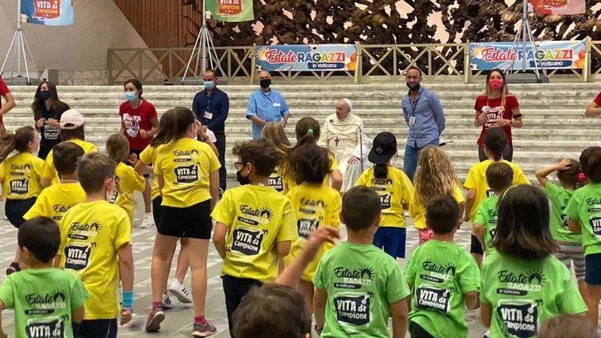 Questa mattina il Papa ha fatto visita ai bambini e ai ragazzi partecipanti alla Estate Ragazzi in Vaticano, mentre facevano colazione nell'atrio dell'Aula Paolo VI