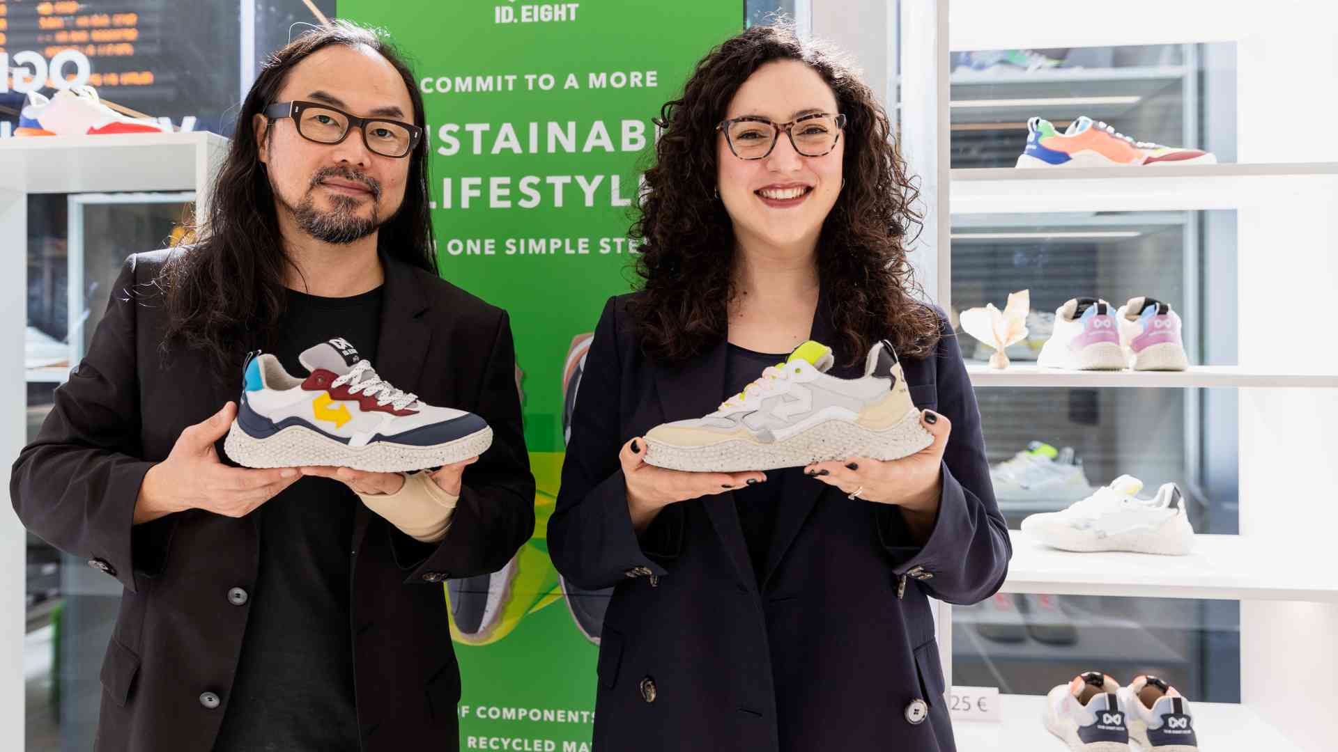 Una cifra su tutte: ogni anno a livello globale vengono prodotte 24 miliardi di scarpe – la maggior parte delle quali sneaker appunto – con un peso dell’1,4% sulle emissioni di CO2 (dati World Footwear Yearbook). Quello che caratterizza questa giovane azienda però, non è solo il suo essere originale tra le tante startup in crescita. Id.Eight ha un «di più» legato al fatto che nasce quasi per caso, e cresce parallelamente alla storia d’amore dei suoi fondatori fino a poco tempo prima privi di esperienza imprenditoriale, oltre che perfetti sconosciuti. Ma mossi dalla stessa volontà di impattare il meno possibile sul pianeta. «Ci siamo incontrati nel 2017 durante una fiera, parlando di scarpe», racconta Giuliana, allora brand manager con una particolare vocazione per l’ecologia. Dong Seon invece è un designer appassionato di sneaker. Entrambi vengono dal mondo delle calzature e più si conoscono, più sentono il bisogno di colmare un vuoto di mercato che non risponde ancora alla richiesta di prodotti che siano rispettosi per l’ambiente e, allo stesso tempo, belli e appetibili.