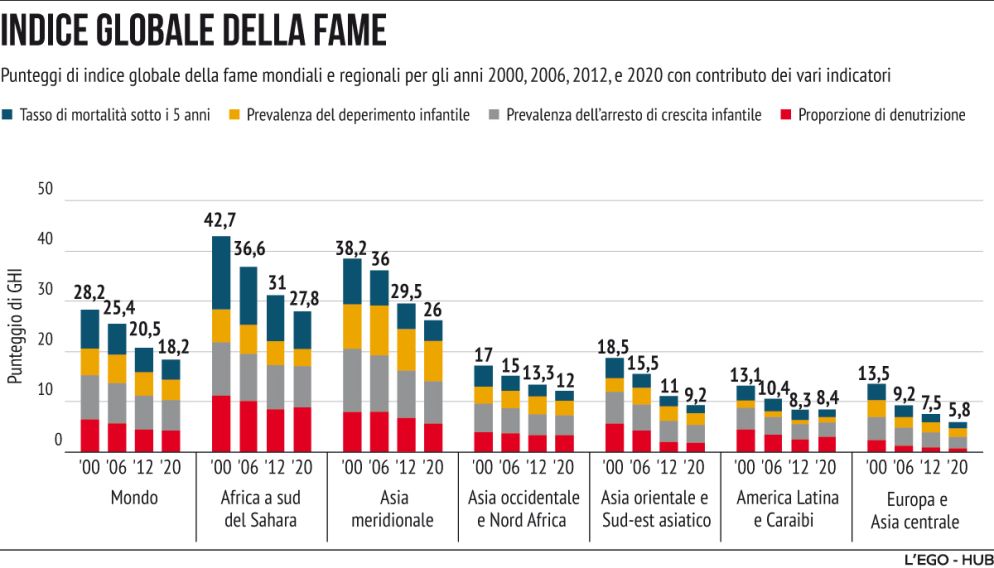 L’Africa a sud del Sahara ha il più alto tasso di mortalità infantile al mondo, mentre l’Asia meridionale ha il più alto tasso mondiale di deperimento infantile. «La lotta alla fame globale – ha sottolineato la presidente di Cesvi, Gloria Zavatta – deve essere sempre di più un impegno comune e una sfida sempre più urgente, resa ancora più complessa dalla pandemia di Covid-19 e dalle sempre più drammatiche conseguenze del cambiamento climatico. Cesvi è in prima linea da decenni nella lotta alla fame e nel sostegno alle popolazioni in fuga da guerre, persecuzioni e violazioni dei diritti umani».