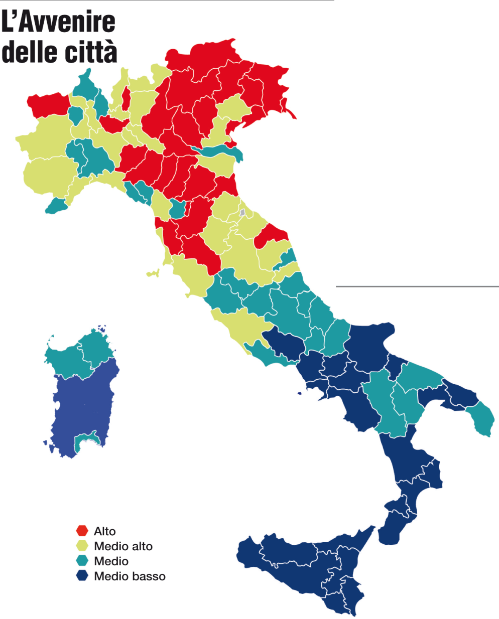 Scalano posizioni i centri di medie dimensioni, Roma è 42esima, mentre il Sud e le Isole arrancano in fondo
