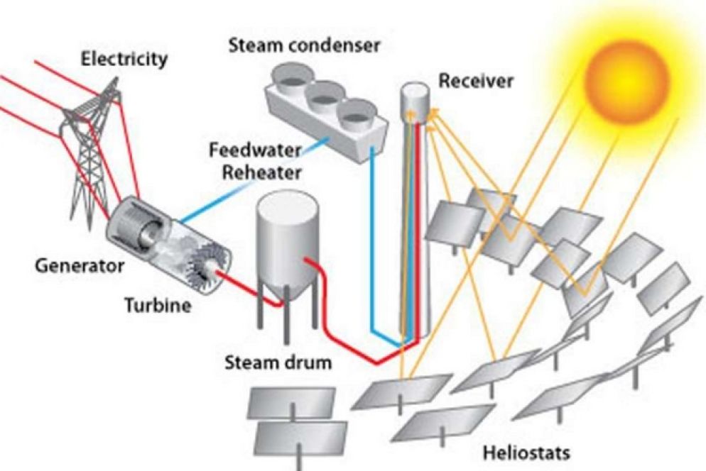 Il piano di TuNur prevede la costruzione di tre elettrodotti. Il più breve collegherebbe la Tunisia a Malta, che dal 2015 è collegata alla Sicilia e quindi al Continente. Il passaggio successivo è un elettrodotto da 600 km fino a Montalto di Castro. L’ultimo collegamento, più lungo, arriverebbe in Francia. Nelle centrali solari termodinamiche speciali specchi (eliostati) riflettono i raggi solari concentrandoli su un ricevitore che contiene dei sali speciali che si surriscaldano. Il calore prodotto viene utilizzato per scaldare dell’acqua e trasformarla in vapore. Il vapore fa girare una turbina producendo elettricità. L’impianto di questo tipo più grande nel mondo, in California, ha una potenza di 392 Mw, circa un quarto della potenza dei reattori nucleari più moderni. In Italia c’è un piccolo impianto solare termodinamico (5 Mw di potenza): la centrale Archimede, realizzata da Enel ed Enea in provincia di Siracusa e operativa dal 2010.