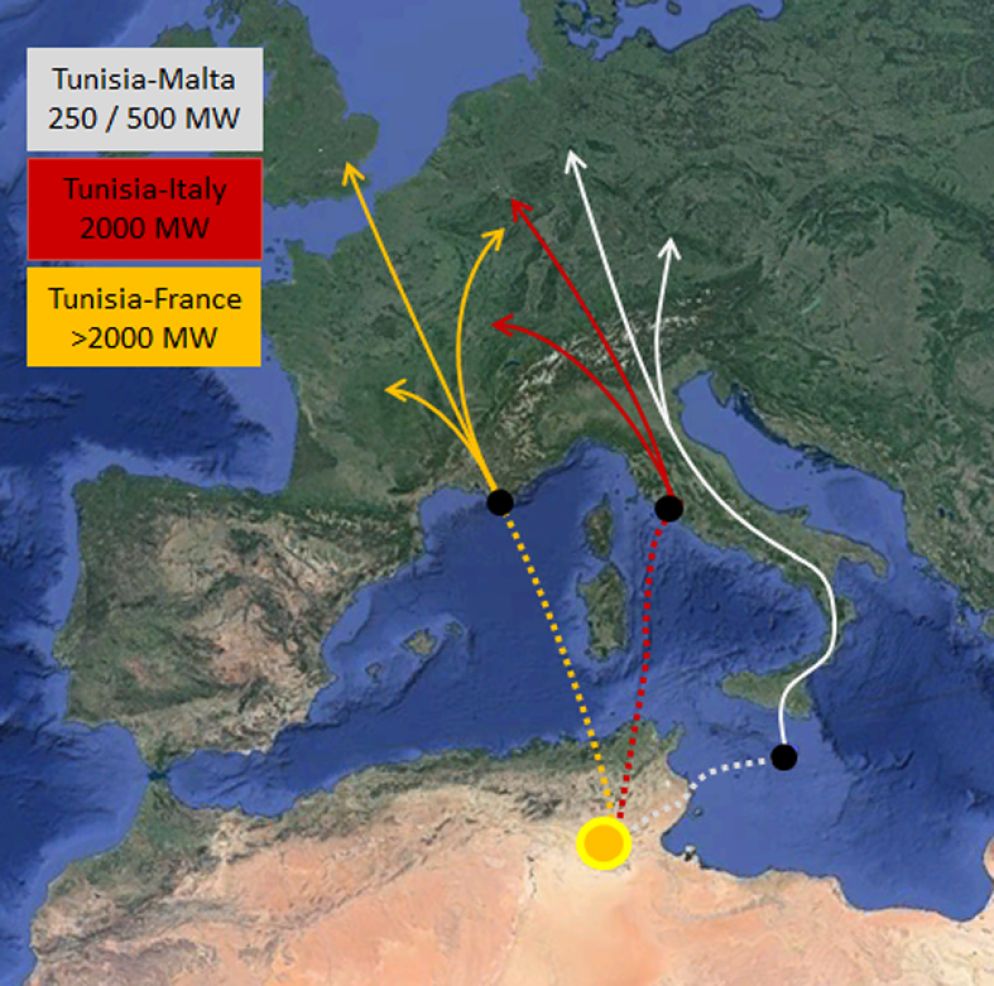 Le successive fasi del progetto di Tunur, il cui responsabile ingegneristico è l’italiano Maurizio Scaravaggi, sono più complicate. Portando la potenza complessiva delle centrali a 4.500 Megawatt, il gruppo anglo-tunisino ipotizza prima un collegamento elettrico da 600 chilometri tra la Tunisia e il centro Italia (aggancerebbe la rete nazionale a Montalto di Castro) e poi un elettrodotto ancora più lungo diretto verso il Sud della Francia. Se tutto fosse completato le centrali tunisine potrebbero soddisfare i consumi di 5 milioni di famiglie europee. Già nella sua versione “di base”, cioè i primi 250 MW e il collegamento all’Europa via Malta e Sicilia, il progetto è sufficientemente ambizioso. Il piano di TuNur prevede la costruzione della maggiore centrale non americana a energia solare termodinamica e la realizzazione del primo elettrodotto “lungo” tra le reti elettriche nordafricane ed europee.