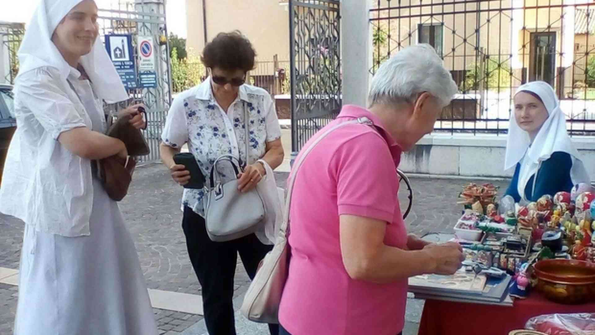 E pensare che l’avventura italiana del monastero di Santa Elisabetta di Minsk è iniziata con un piccolo banchetto, all’esterno di una parrocchia milanese: «Siamo arrivate in Italia tanti anni fa e tutto è cominciato da zero. Avevamo amici nelle parrocchie qui, a Milano, e abbiamo allestito un piccolo tavolo per vendere le cose che fabbricavamo nelle botteghe. All’inizio le botteghe erano solo tre o quattro e dopo aver iniziato a vendere qualcosa siamo andate in altre parrocchie, e alla fine siamo arrivate in fiera. La gente è molto buona: quando vedono che lo facciamo per i bambini sono molto aperte, e aiutano tanto. Io ringrazio tutta la gente che viene da noi e che compra da noi, che ci aiutano. E’ davvero un grande aiuto per noi».