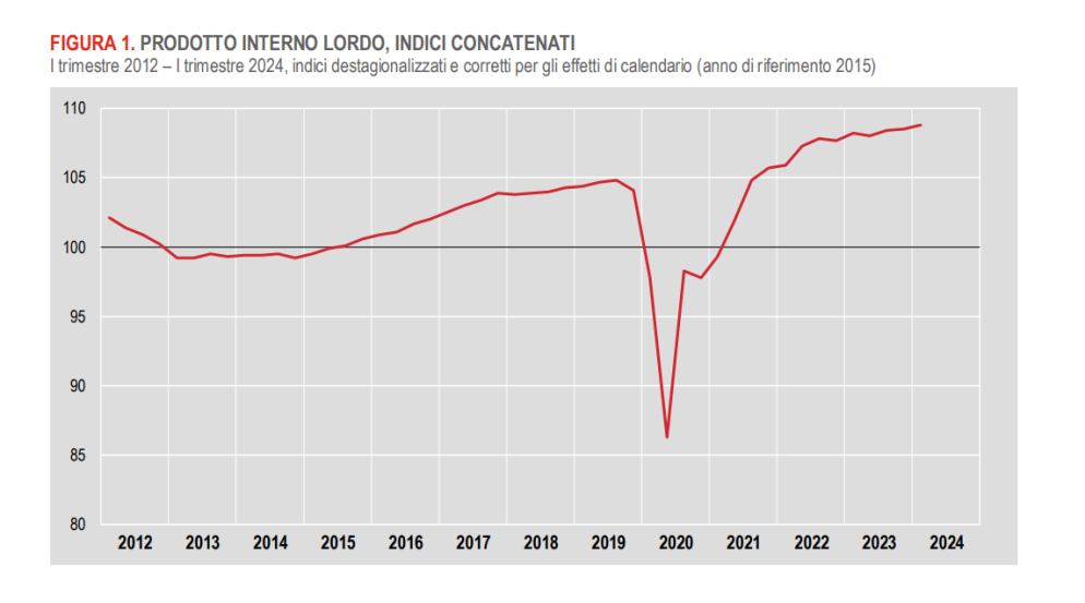L'economia italiana cresce più di Francia e Germania, ma meno della Spagna. Nel primo trimestre del 2024 il Pil italiano è cresciuto dello 0,3% rispetto ai tre mesi precedenti, chiusi a +0,1% (dato rivisto al ribasso da +0,2%). Sono le stime preliminari dell'Istat che segnala anche che su base tendenziale il Pil del nostro Paese è aumentato dello 0,6%.