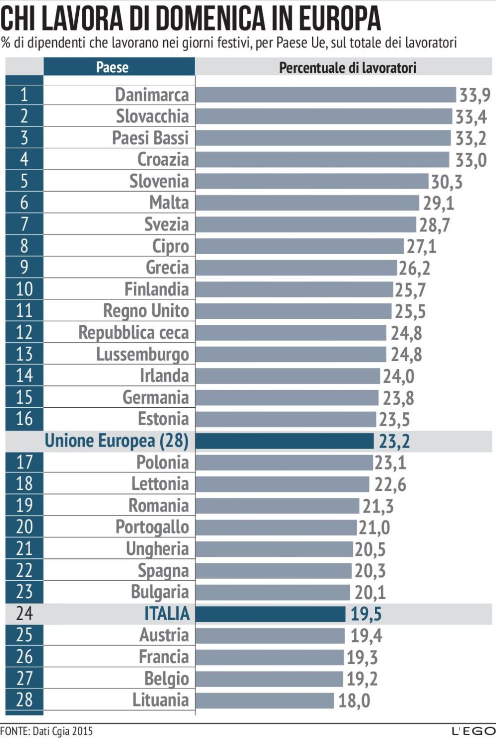 Il trend è confermato dalle rilevazioni del centro studi di Confcommercio sulla 'demografia' delle attività commerciali: negli ultimi dieci anni si è verificata una flessione del 2,1%. Anche i dati Istat sull’occupazione nel commercio nello stesso quinquennio sono impietosi: tra lavoratori dipendenti, indipendenti, esterni e temporanei si è scesi sotto gli 1,9 milioni. Con quasi 30mila posti andati in fumo. Spesso, inoltre, un lavoratore non ottiene neppure un gran vantaggio economico dal fatto di essere occupato la domenica o in altri giorni festivi. E ciò avviene nonostante il contratto del commercio preveda una maggiorazione della retribuzione oraria del 30% anche con il parttime. I sindacati, infatti, segnalano diverse anomalie. La Cisl Fisacat sostiene che nella maggior parte dei casi i lavoratori assunti per coprire i turni nel weekend non ottengono una maggiorazione sullo stipendio perché il lavoro di sabato e domenica viene considerato come un 'tempo ordinario'.