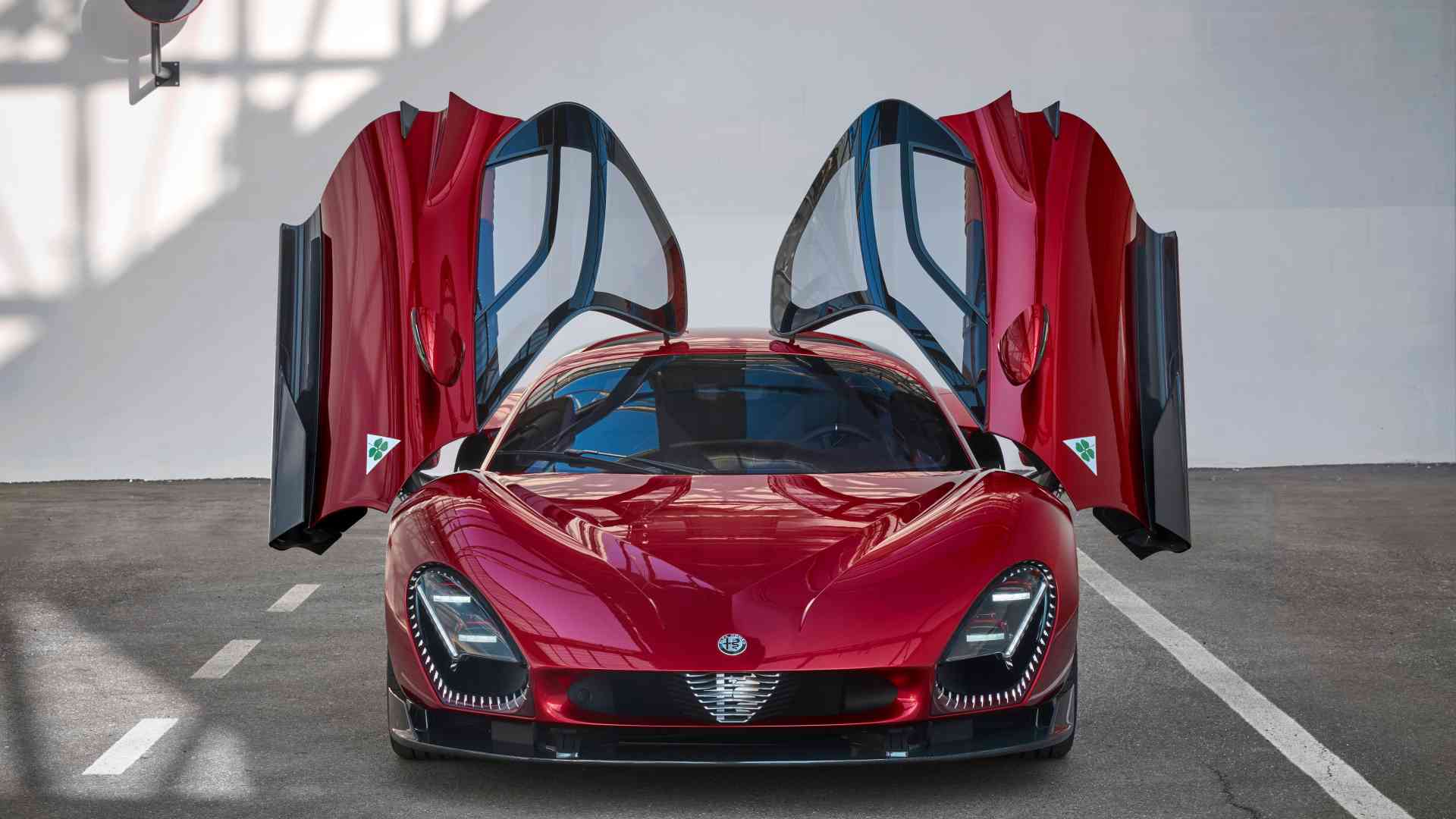 La scelta è sulla alimentazione: "Qui sono arrivati per il lancio 29 dei 33 clienti, per vedere dal vivo la vettura, alcuni hanno cambiato la configurazione, anche sulla power unit", ha detto Imparato senza entrare nel dettaglio sulla preferenza, se si sposta dalla versione elettrica a quella termica o viceversa. Sotto il cofano soluzioni di alta ingegneria, tra cui sospensioni a doppio braccio con ammortizzatori attivi, motore longitudinale, evoluzione del V6, biturbo da 3.0 litri e più di 620 CV, cambio americano Tremec, trazione posteriore, differenziale elettronico a slittamento limitato. In configurazione elettrica (BEV), potenza sopra i 750 CV e autonomia a 450 km. Potenza e sportività: velocità 333 km/h, da 0 a 100 km/h in 3” (elettrica 2”5), frenata da 100 a 0 km/h in meno di 33 metri (freni carboceramici ventilati). All’avantreno un sistema solleva il muso di 5 cm. Una chicca: taratura finale affidata a Bottas, pilota di F1. Un modello “fuoriserie” che premia “il coraggio di sognare”, slogan adottato per il lancio della vettura, ma come detto apre le porte al futuro di una nuova Alfa Romeo. Una storia che per il pubblico "normale", quanto prima saluterà l’arrivo di un piccolo Suv e attende nuovi modelli.
