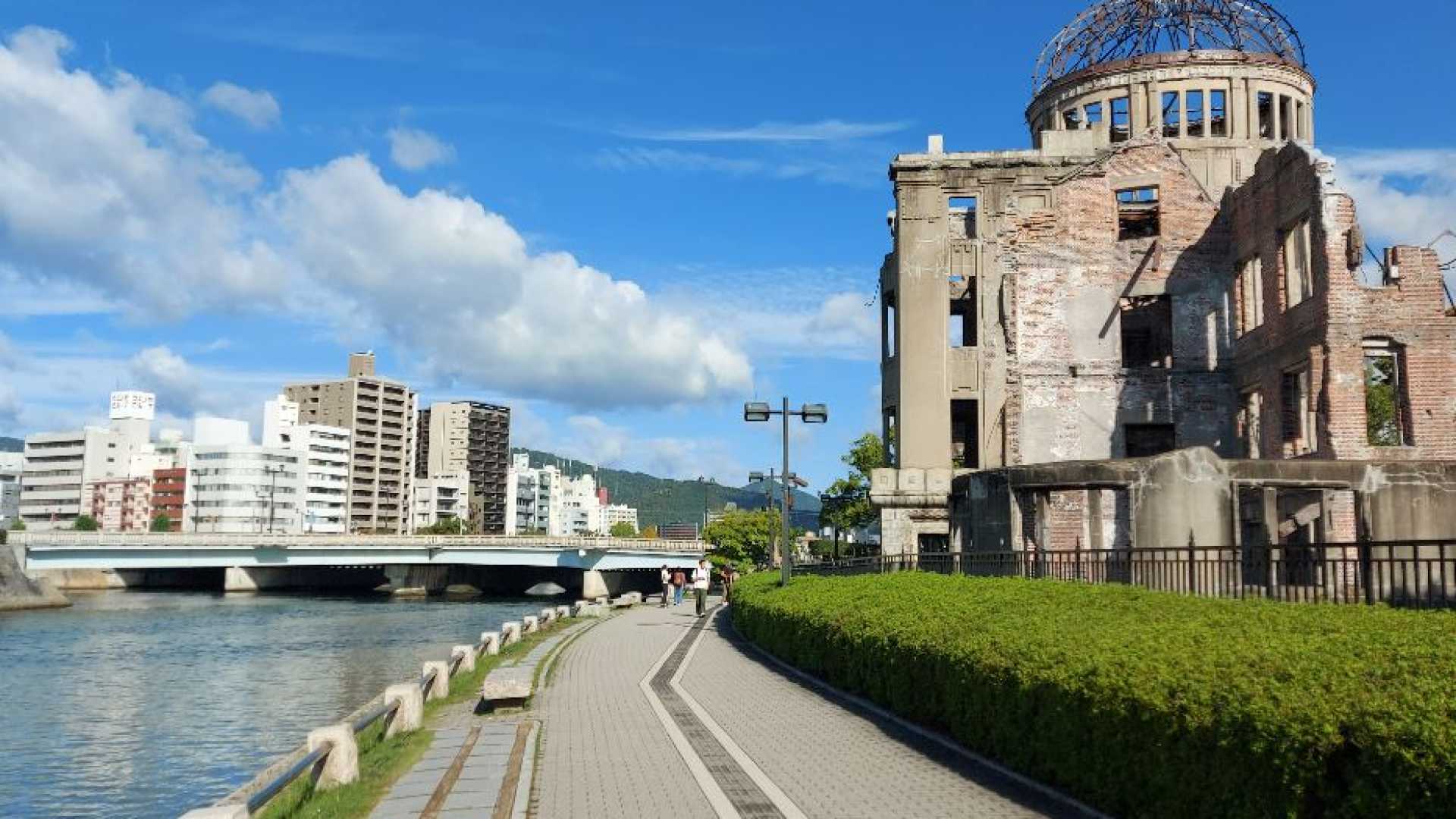 Lo illustra la grande area al centro della città, sull’isola sdraiata nel fiume Motoyasu, con il monumento, la campana, il museo e il simbolo stesso della minaccia atomica, la Cupola scheletrica di Genbaku, il palazzo delle esposizioni nell’ipocentro dell’esplosione. Hiroshima però non è tutta lì, vive affacciata sul futuro, tutt’altro che ferma a ricordare. Ed è proprio qui che coglie lo sgomento: non un luogo fermo alla pagina di storia, come un cippo, ma l’intera città rinata sulle ceneri delle sue case e di 140mila morti è un sacrario alla memoria e un monito al presente.