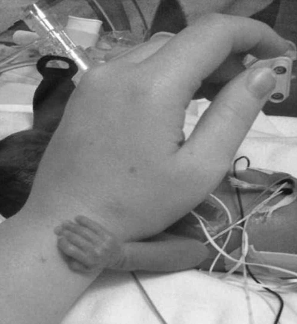 La settimana scorsa m’è capitata questa esperienza con una foto: una foto apparentemente banale (proveniente da un social network), per di più in bianco e nero, che ritraeva una piccola, piccolissima manina calata su una manona. Niente di che. Ma era troppo piccola la manina, c’era qualcosa d’innaturale in quella piccolezza. Dopo aver voltato parecchie pagine del giornale, quella piccolezza mi richiamò indietro.