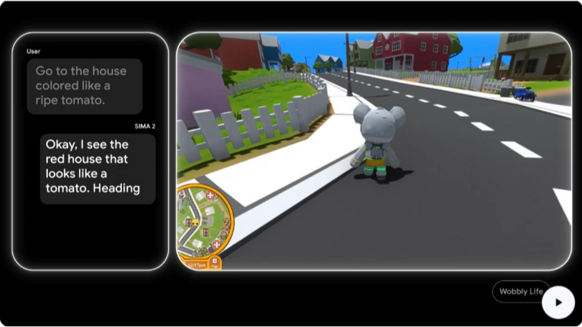 Per questo l’ultima meraviglia di DeepMind, il laboratorio di ricerca sull’IA britannico di Alphabet (cioè Google), a prima vista potrebbe sembrarci un po’ deludente. Si chiama Sima 2, sigla che sta per Scalable Instructable Multiworld Agent, “agente multi-mondo scalabile e istruibile”, ed è bravissimo a giocare ai videogiochi. Spiegano da DeepMind che il vecchio Sima, introdotto l’anno scorso, era capace di entrare nel mondo del videogioco e rispondere a comandi semplici da parte di un essere umano: obbediva a ordini tipo «gira a destra», «sali la scala» o «apri la mappa», in seicento lingue. Sima 2 è decisamente qualcosa di più. Grazie all’utilizzo di Gemini, il sistema IA di Google, il nuovo Sima dispone di «potenti capacità di ragionamento che lo aiutano a comprendere l’obiettivo di alto livello dell’utente, a svolgere ragionamenti complessi per raggiungerlo e a eseguire abilmente azioni orientate allo scopo all’interno dei giochi». Concretamente, inserito in un videogioco Sima 2 si comporta come farebbe un personaggio comandato da un essere umano: ragiona sul da farsi, spiega quello che intende fare, descrive i passaggi necessari per raggiungere i suoi obiettivi. Interagire con un agente di questo tipo, spiegano da DeepMind, «è come collaborare con un compagno che ragiona sul compito da svolgere»