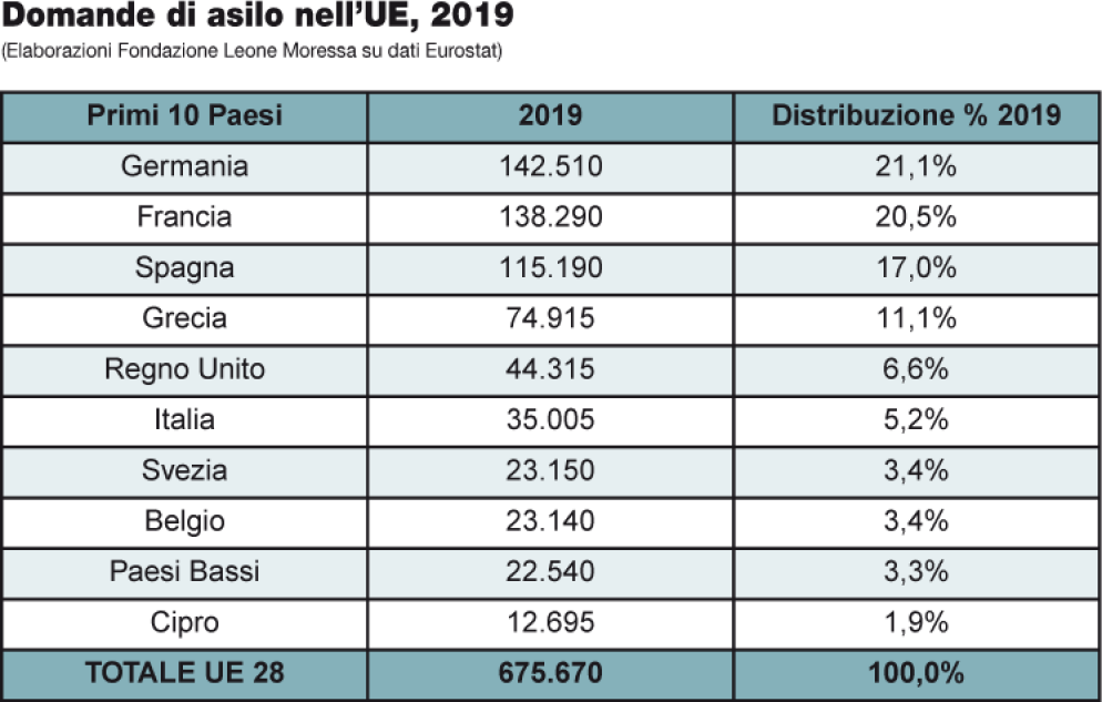La quota del nostro Paese supera di poco il 5%. I partner più investiti dall’obbligo di accoglienza umanitaria sono risultati nell’ordine la Germania, la Francia e la Spagna, tutte al di sopra dei 100.000 richiedenti (si veda la tabella 1 in pagina). Con andamenti di questo tenore, pur ammettendo che nel 2020 la quota italiana risalga un po’ per effetto degli arrivi dei mesi estivi, un eventuale meccanismo di redistribuzione obbligatoria ci vedrebbe nella scomoda posizione di Paese destinato a ricevere quote aggiuntive di richiedenti asilo, anziché titolato a dirottarle verso altre destinazioni. Si può obiettare che occorre tenere conto dei dati pregressi, ossia degli anni più drammatici degli sbarchi sulle nostre coste, tra il 2015 e il 2017. Il problema è che anche in questo caso i dati non confermano le rappresentazioni.