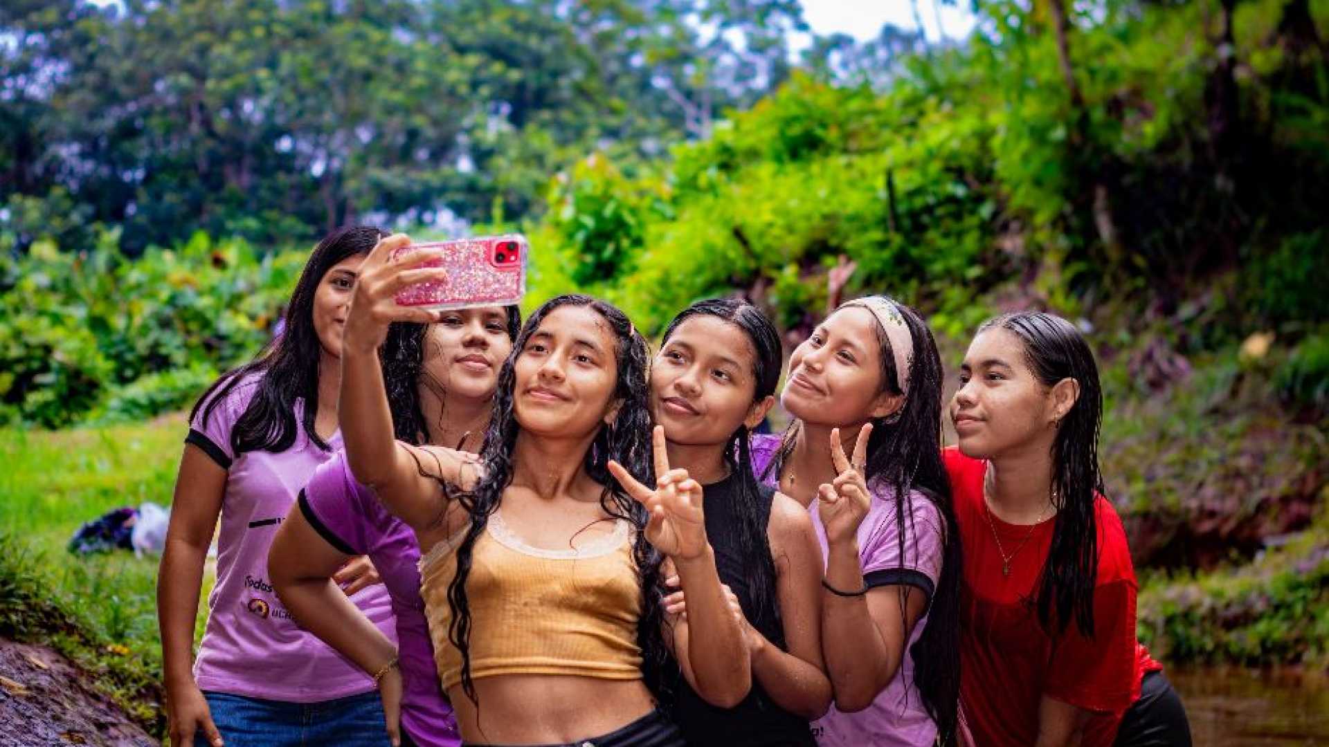 Un gruppo di studentesse della provincia di Loreto, nell’Amazzonia peruviana. Le testimonianze di alcune di loro compaiono in questo reportage / Todas para Una Un gruppo di studentesse manifesta contro la violenza sulle donne a Nauta / Todas para Una
