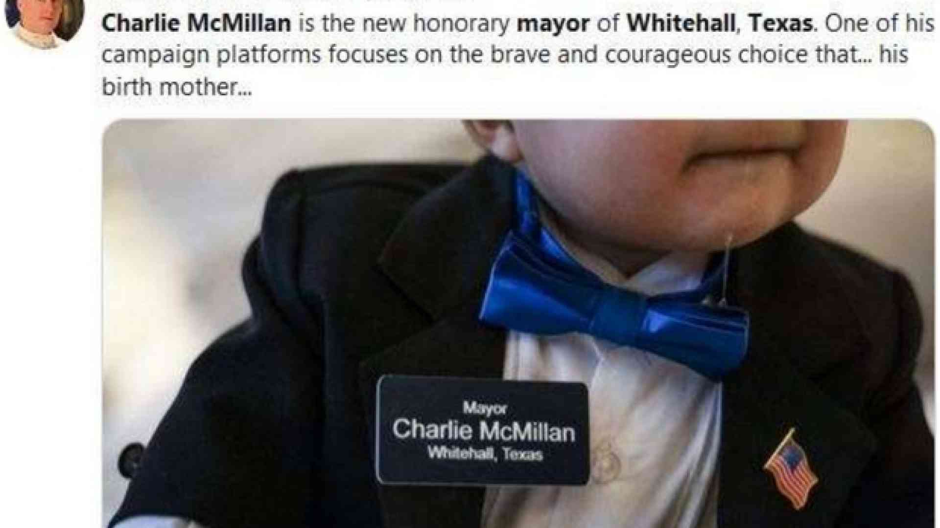 «Sindaco Charlie» è il primo cittadino più giovane d’America, ma la sua piattaforma è molto ambiziosa, tanto che, in meno di due settimane è diventato il nuovo volto del movimento antiabortista negli Stati Uniti. All’insediamento, il 15 dicembre, vestito in smoking, William Charles McMillan ha promesso «solennemente di eseguire fedelmente le mansioni di sindaco di Whitehall» e di «promuovere la vita, l’adozione e una vita pulita», oltre ad «essere gentile con tutti al parco giochi».