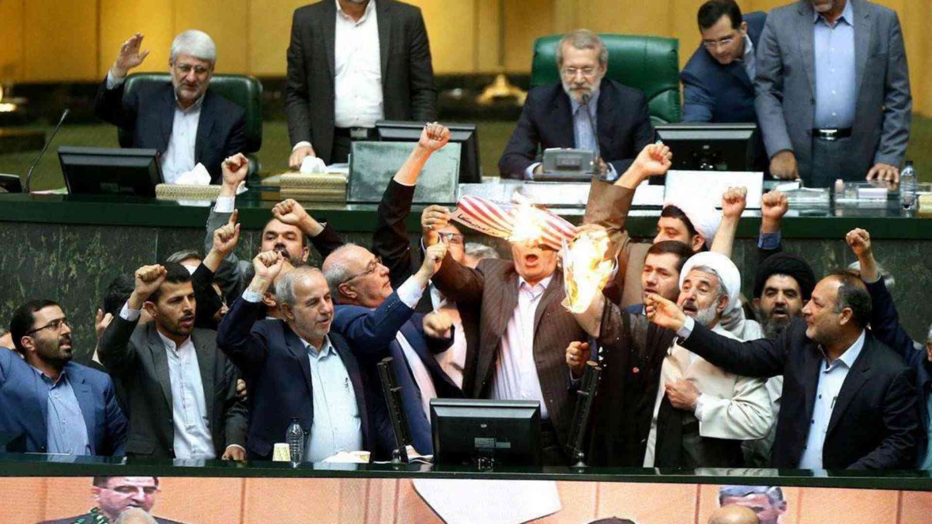 La dimostrazione di un gruppo di deputati in risposta a Trump. Mogherini ribadisce l'impegno dell'Ue sull'accordo. Oggi telefonata tra Macron e Rohani