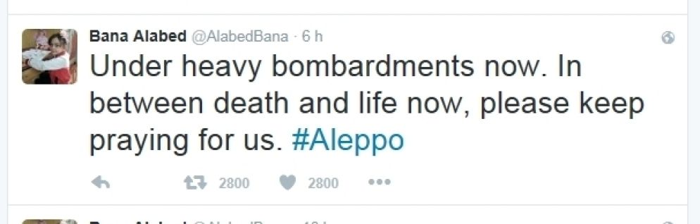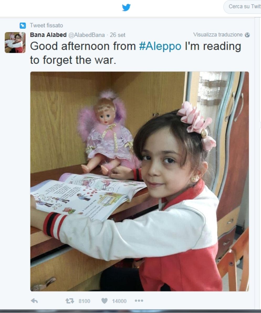 Bana è diventata una piccola notorietà, sul web e sui media, negli ultimi due mesi. A partire dal celebre tweet di saluto da Aleppo sotto le bombe, con una foto che la ritrae intenta a fare i compiti: "Buon pomeriggio da Aleppo. Sto leggendo per dimenticare la guerra".