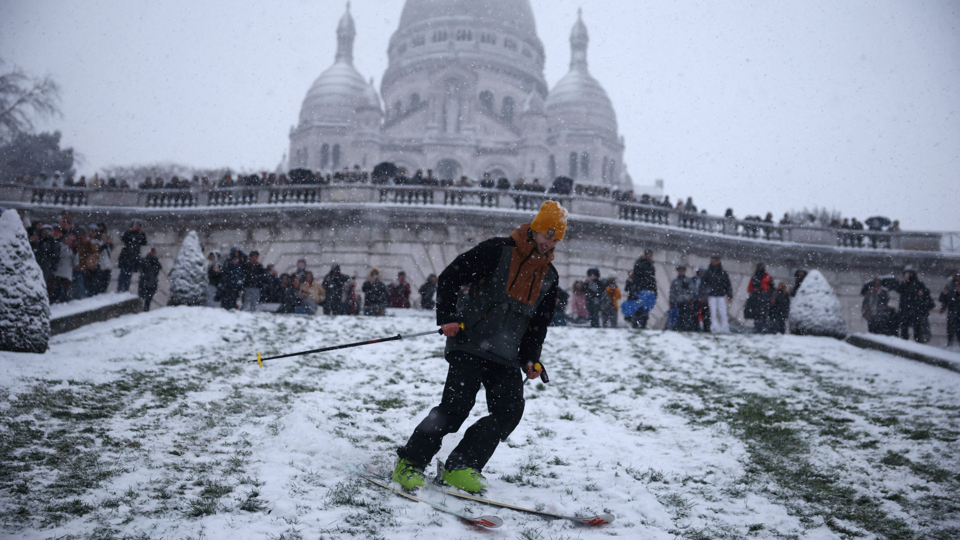 Con gli sci giù da Montmartre: le immagini della nevicata a Parigi