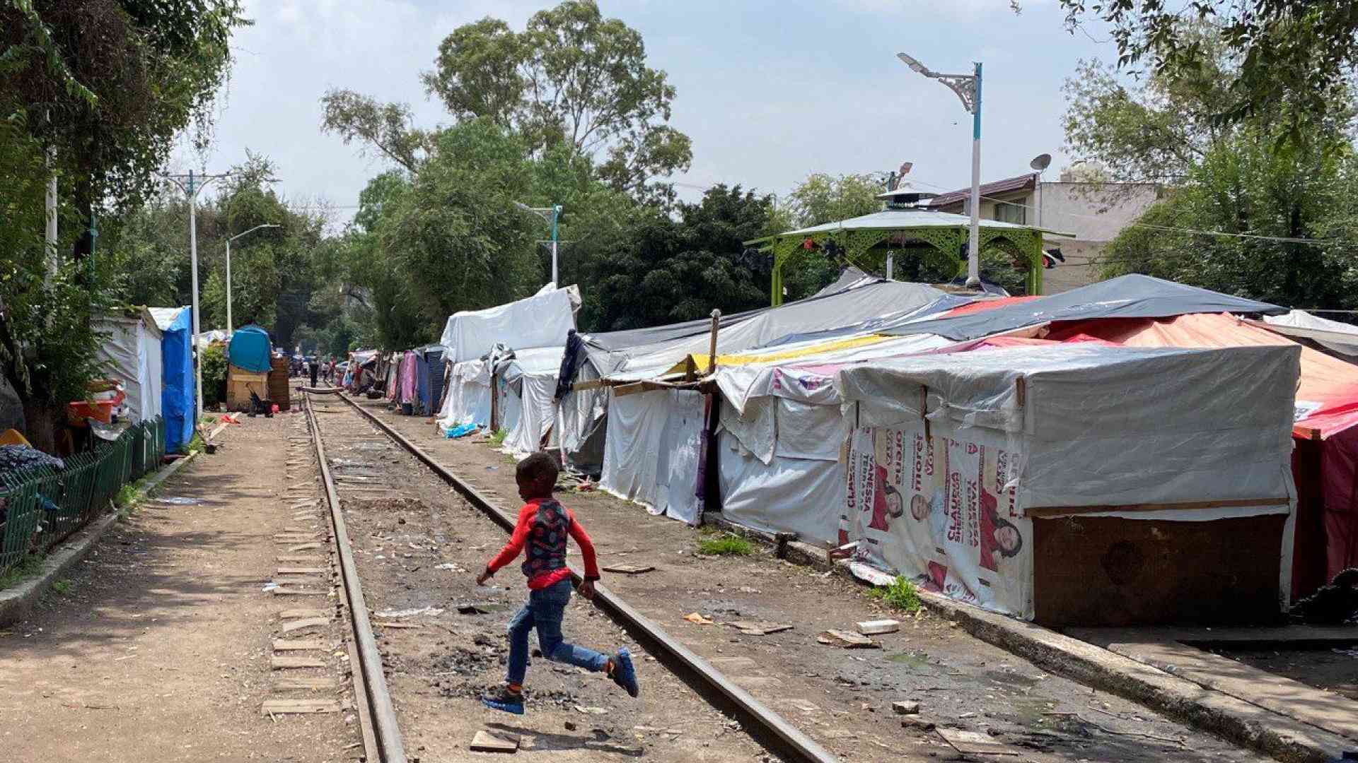 Carmen e Juan sono seduti fuori da una tenda, sul marciapiede di una delle metropoli più popolose al mondo: Città del Messico. Hanno trentacinque e quarant’anni, vengono dal Venezuela, sono migranti. «Siamo arrivati da tre settimane» dicono, poi indicano un portone alle loro spalle. «Possiamo stare qui solo perché i proprietari di casa ce lo permettono, anzi, quando possono ci aiutano con cibo o medicine. Ma sono un’eccezione, qua nessuno ci vuole. Di notte arrivano altre persone, sparano, picchiano sulle nostre tende. Noi abbiamo per protezione solo la plastica». Che cosa fanno, qui accampati? «Aspettiamo di poter ripartire per gli Stati Uniti». Come loro, migliaia di altre persone migranti sono ferme a Città del Messico, bloccate, in attesa. Alcune si incontrano a pochi passi da Carmen e Juan, in un’altra distesa di tende che si sviluppa sui due lati di una ferrovia. Ci sono due bambini che giocano, un uomo che stende un materasso sui binari, una donna che cucina su un piccolo fuoco.