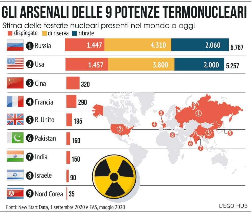 Anzi, degli oltre 13mila ordigni esistenti nel pianeta. Il cosiddetto club dei nove che include, oltre ai cinque “possessori legali” in base al Trattato di non proliferazione ( Tnp) – Usa, Russia, Gran Bretagna, Francia e Cina –, anche India, Pakistan, Israele e Corea del Nord. Capofila della battaglia anti–bando sono gli Stati Uniti di Donald Trump. In una lettera – rivelata dall’Associated Press pochi giorni fa –, Washington era arrivata a chiedere ai sottoscrittori di ritirare l’adesione, definita un «errore strategico». Con un’argomentazione apparentemente paradossale. Il divieto avrebbe «voltato le spalle al sistema di verifica e disarmo stabilito e ciò è pericoloso». Il riferimento è evidentemente al Tnp, siglato nel 1968 e entrato in vigore due anni dopo, e alla teoria della deterrenza che ne costituisce l’asse fondamentale. In base a quest’ultima, l’unico modo per prevenire un attacco nucleare è la minaccia di distruzione totale del nemico.