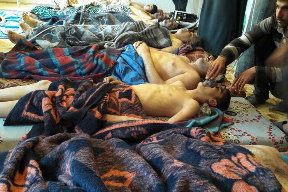 Sui social network gli attivisti hanno postato immagini drammatiche che mostrano i volontari della Protezione civile, i cosiddetti Caschi bianchì (peraltro accusata da più parte di essere vicino ai ribelli siriani), che soccorrono i feriti stesi a terra lavandoli con i tubi dell'acqua. In un altro video si vedono alcuni bambini morti. Impossibile stabilire la veridicità delle immagini, che hanno fatto il giro del mondo.