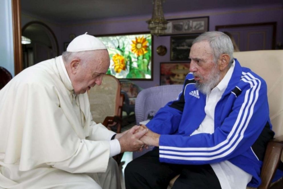 Tra cui la celebre frase: «Che cosa fa un Papa?». A papa Ratzinger Castro chiese, inoltre, qualche consiglio di lettura. Memore di ciò, papa Francesco ha regalato al Líder Máximo una serie di volumi quando l’ha incontrato, nel viaggio all’Avana, il 20 settembre 2015. A ricevere Bergoglio, nella sua casa-clinica, è stato un Fidel malato, in tuta da ginnastica ma ancora lucido e entusiasta di poter conoscere un Papa latinoamericano, nonché argentino, nazionalità che a Cuba è associata all’eroe della Revolución Ernesto Che Guevara. Un incontro, dunque, dal forte valore simbolico che ha riassunto in pochi scatti - come sottolinea Il Sismografo – oltre un secolo di storia latinoamericana. E simbolico è stato anche il dono di Francesco a Castro di un cd con le omelie di padre Armando Llorente, gesuita, docente di Fidel al collegio di Belém e suo amico.