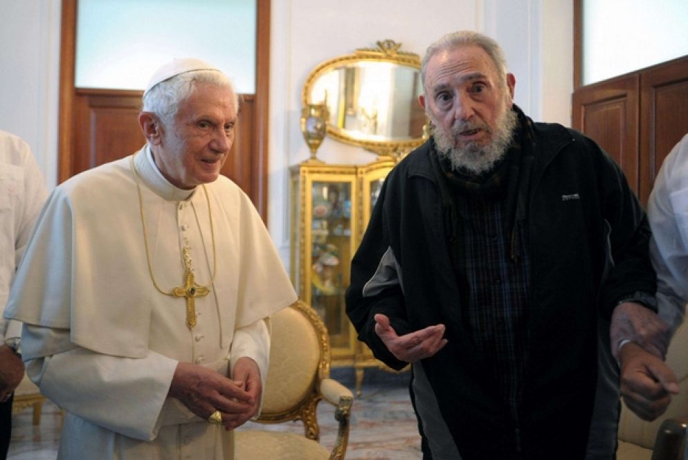 L’immagine di quella stretta di mano, il 21 gennaio 1998, rimase impressa nella storia. La Chiesa accompagnava Cuba nel suo doloroso travaglio, nella speranza che “l’isola si aprisse al mondo e il mondo a Cuba”, come disse il Santo Padre. Un appello forte a rompere l’isolamento internazionale in cui si dibatteva il Paese nel post-Guerra fredda. In segno di gratitudine e rispetto, Fidel si presentò a sorpresa alla Messa di Giovanni Paolo II alla Plaza de la Revolución, insieme al Nobel Gabriel García Márquez. Castro - che ebbe cinque incontro in totale con il papa polacco – avrebbe poi conosciuto anche i successori. Nel 2012, ormai lasciate le cariche ufficiali, chiese di vedere Benedetto XVI durante il suo viaggio nell’isola, il 27 marzo 2012. La riunione si svolse in nunziatura, prima della partenza del Pontefice. Fu un colloquio cordiale, infarcito di battute sull’età e scandito da numerose domande di Fidel sulla teologia e il ruolo della Chiesa.