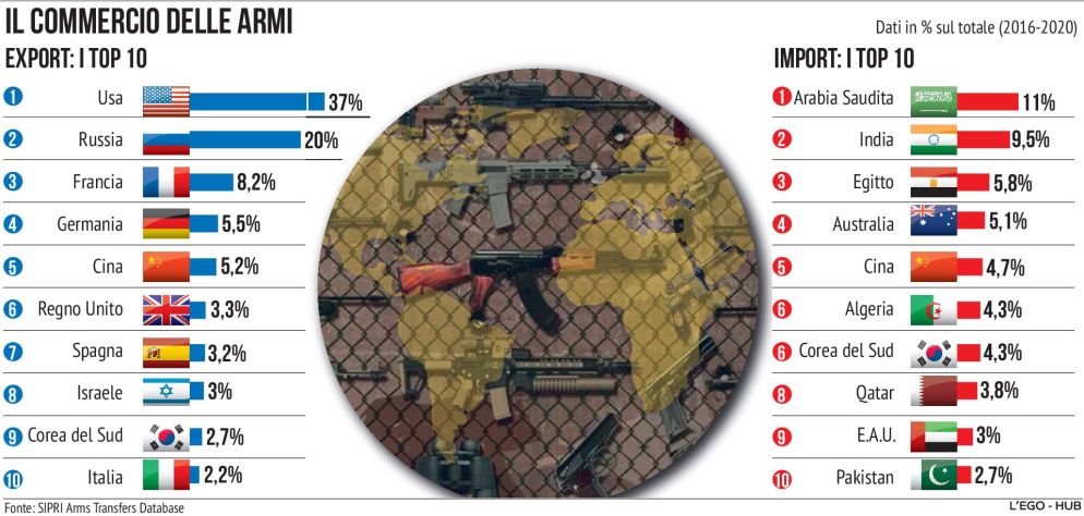 È una spirale perversa, imposta dai piani navali turchi, egiziani e algerini e dettata dalla fortissima dipendenza marittima del nostro Paese, privo di risorse energetiche e legato al mare per i commerci. I 24,5 miliardi di euro appannaggio del nostro ministero della Difesa stridono di fronte ai 778 miliardi di dollari del Pentagono, spesi per ammodernare le armi nucleari, sviluppare nuovi sistemi bellici e riarmare di fronte alla dirompenza delle sfide geostrategiche poste da Cina e Russia. Per il Sipri, Pechino spende molto più di quanto dichiari: 252 miliardi di dollari anziché 212. Le sue poste di bilancio crescono per il 26° anno consecutivo, obbligando la rivale India ad allungare il passo (72,9 miliardi). Le mire cinesi sullo scacchiere indo-pacifico spingono al rialzo anche gli investimenti giapponesi, sudcoreani e australiani. Potenza bicontinentale, la Russia sborsa sempre di più (+2,5%), costringendo i Paesi europei a rimodulare i loro investimenti (+4%), vuoi per controbattere, vuoi per sottostare agli obblighi con la Nato, vuoi per la ricerca di una maggiore autonomia strategica. Fatto grave, le spese militari tornano a crescere pure in Africa, soprattutto nei paesi più colpiti dalle ribellioni jihadiste, come il Mali (+22%), la Mauritania (+23%), la Nigeria (+29%), il Ciad (+31%) e, caso a parte, l’Uganda (+41%). Vanno invece in controtendenza, il Medio Oriente e l’America Latina, uniche regioni del pianeta a tagliare le spese militari. Bisognerebbe fare come loro e smuovere nel dibattito strategico «la dialettica delle intelligenze» pacifiste.