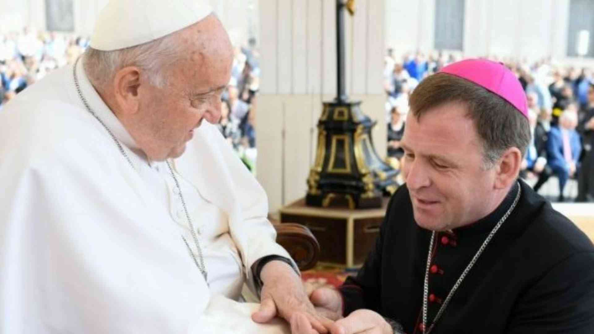 «Vedo la mia gente andarsene con le lacrime agli occhi». Kharkiv torna a fare i conti con la “grande fuga” dai bombardamenti russi, racconta il vescovo di Kharkiv-Zaporizhzhia, Pavlo Honcharuk. Come era accaduto nei primi mesi di guerra. Allora la seconda città dell’Ucraina abitata da un milione e mezzo di persone era stata stretta d’assedio dall’esercito russo che, arrivato dal confine a cinquanta chilometri, si era fermato alle porte dell’ex capitale. Due anni dopo i soldati di Putin hanno lanciato una nuova offensiva lungo la frontiera della regione. E la metropoli è da quasi un mese sotto il fuoco incessante di missili e droni che stanno seminando morte, distruzione e paura. Il vescovo ha portato fin nelle mani di papa Francesco «la sofferenza» della sua terra, spiega ad Avvenire durante la sua visita a Roma. Con due doni affidati al Pontefice che ha incontrato mercoledì al termine dell’udienza generale: il distintivo del gruppo di laici e sacerdoti che formano la cappellania militare della Chiesa di rito latino in Ucraina e il tridente, simbolo del Paese, in cui compare anche una croce. Francesco li ha benedetti. E ha benedetto il presule. «Riconsegnerò la benedizione del Papa alla città, anche se sentiamo la sua vicinanza dall’inizio del conflitto», annuncia monsignor Honcharuk.