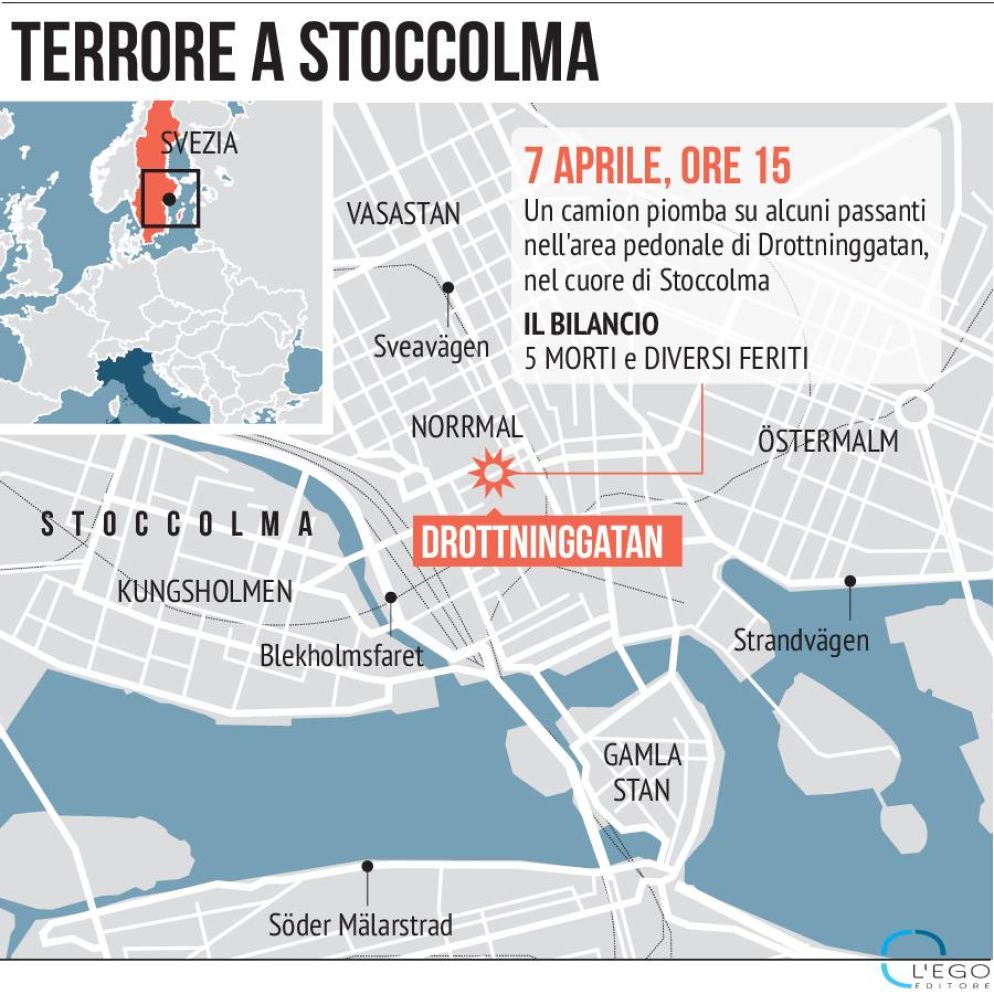 Il fatto è avvenuto poco prima delle 15 ora italiana. Un camion, risultato rubato, si è lanciato sui passanti nella principale via pedonale della capitale svedese, Drottningatan, frequentata per lo shopping. Testimoni parlano di un uomo solo alla guida. Il veicolo sarebbe poi andato a schiantarsi contro un grande magazzino, prendendo fuoco. Testimoni, citati dai media svedesi, riferiscono di avere sentito anche esplosioni di arma da fuoco.