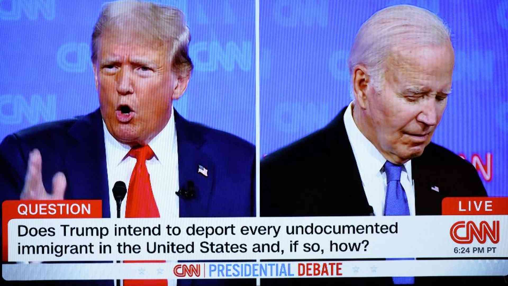 Al di là dei contenuti del dibattito (che non sono apparsi certo di particolare livello), il primo faccia a faccia tra i due candidati alla guida degli Stati Uniti, il presidente in carica Joe Biden e l’ex presidente Donald Trump, svoltosi nella notte tra giovedì e venerdì negli studi della Cnn e proposto in Italia da SkyTg24, da un punto di vista strettamente televisivo è stato favorevole allo sfidante già a partire dall’abbigliamento. Entrambi in abito scuro, con sfumature però diverse: nero o fumo di Londra quello di Biden, blu quello di Trump. Ma soprattutto cravatte diverse: la rossa di Trump risaltava molto più di quella azzurra del presidente che quasi si confondeva, in una sorta di effetto chroma key, con lo sfondo altrettanto azzurro dello studio della popolare tv americana.