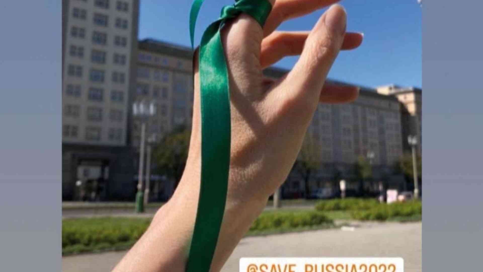 Le persone postano da tutta la Russia nastri verdi legati in ogni luogo, e a volte se stessi con un cartello contro la guerra e l’aggressione all’Ucraina. Una ragazza ha postato il suo polso avvolto dal nastro davanti ai carri armati che nei pressi della Piazza Rossa si preparano per la parata del 9 maggio.