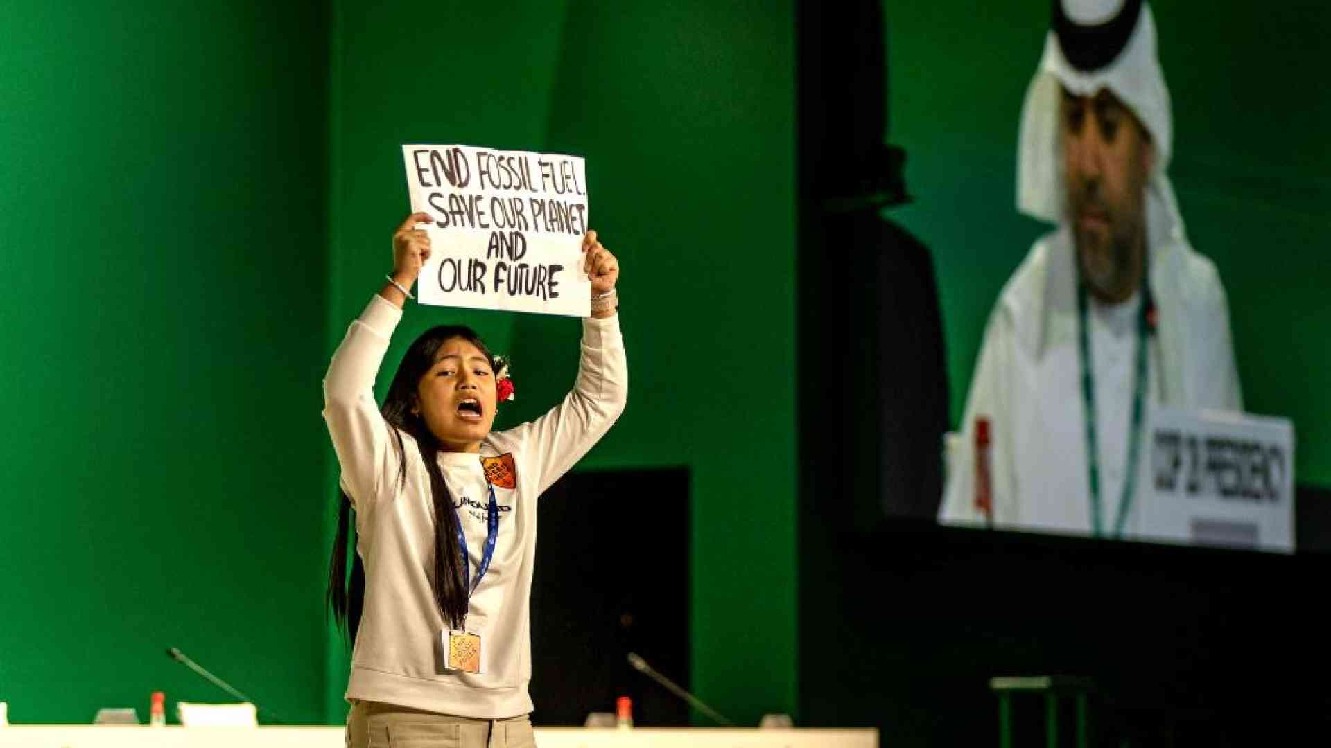 Si chiama Licypriya Kangujam, ha 12 anni, e viene dall’India. È lei l’emblema di questa lunga giornata alla Conferenza Onu sull’ambiente (Cop28), la penultima, ma solo in teoria. La sua entrata ha interrotto la “sessione di alto livello” dei negoziatori nella sontuosa sala al-Ghafat del Dubai Exhibition centre. La giovanissima attivista si è diretta verso il palco con il cartello: «Abbandonate i combustibili fossili. Salvate il pianeta e il nostro futuro». Quando la polizia l’ha accompagnata fuori, è scoppiato un applauso fragoroso e la ragazzina ha incassato le lodi del direttore generale della Cop28, Majid Al Suwaidi. Una manciata di minuti dopo, però, la presidenza del vertice – rappresentata dal sultano Ahmed al-Jaber, amministratore delegato della compagnia petrolifera nazionale Adnoc – ha presentato una bozza del principale documento conclusivo che va in senso opposto rispetto alle attese di Licypriya e dei tanti ragazzi giunti a Dubai cper chiedere ai leader un’autentica transizione energetica. Arrivato con oltre otto ore di ritardo sulla tabella di marcia, il testo provvisorio di sintesi di due settimane di trattative ha archiviato «l’eliminazione graduale dei combustibili fossili», supplicata per l’ennesima volta ieri dal segretario generale dell’Onu, António Guterres, tornato negli Emirati per il “gran finale”.