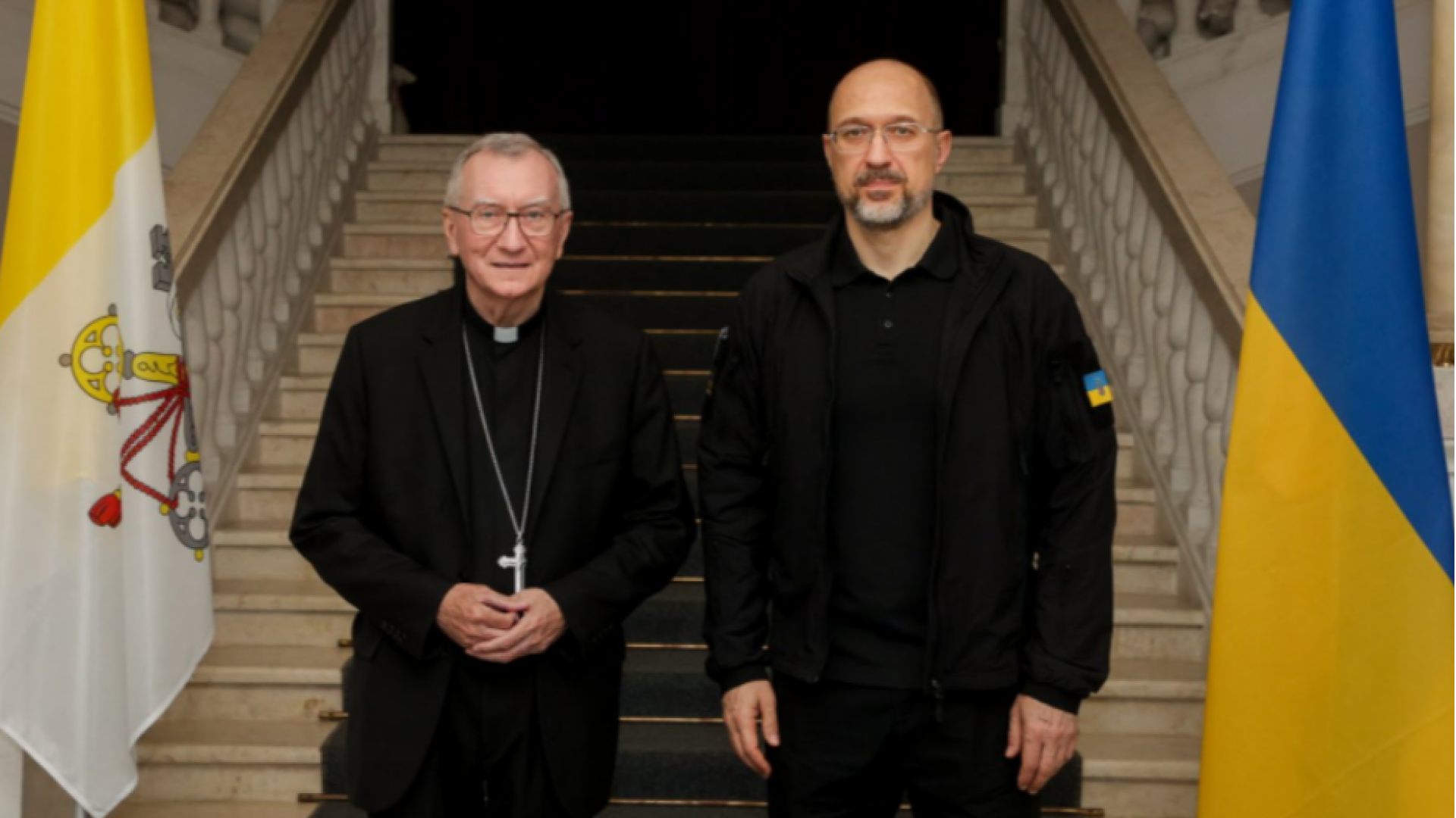 L'incontro del segretario di Stato vaticano, Parolin, con il premier e il presidente del Parlamento. Il grazie del governo per il sostegno umanitario. In agenda anche il piano di pace di Zelensky
