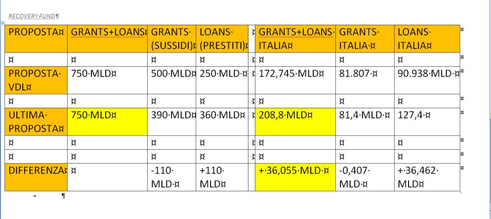 "Abbiamo anche migliorato l'intervento a nostro favore, se consideriamo la proposta originaria della commissione Ue e della presidente Von der Leyen", tiene a sottolineare, "abbiamo conservato 81 miliardi a titolo di sussidi e abbiamo incrementato notevolmente l'importo dei miliardi concessi in prestito, passati da 91 a 127, con un aumento di 36 miliardi".